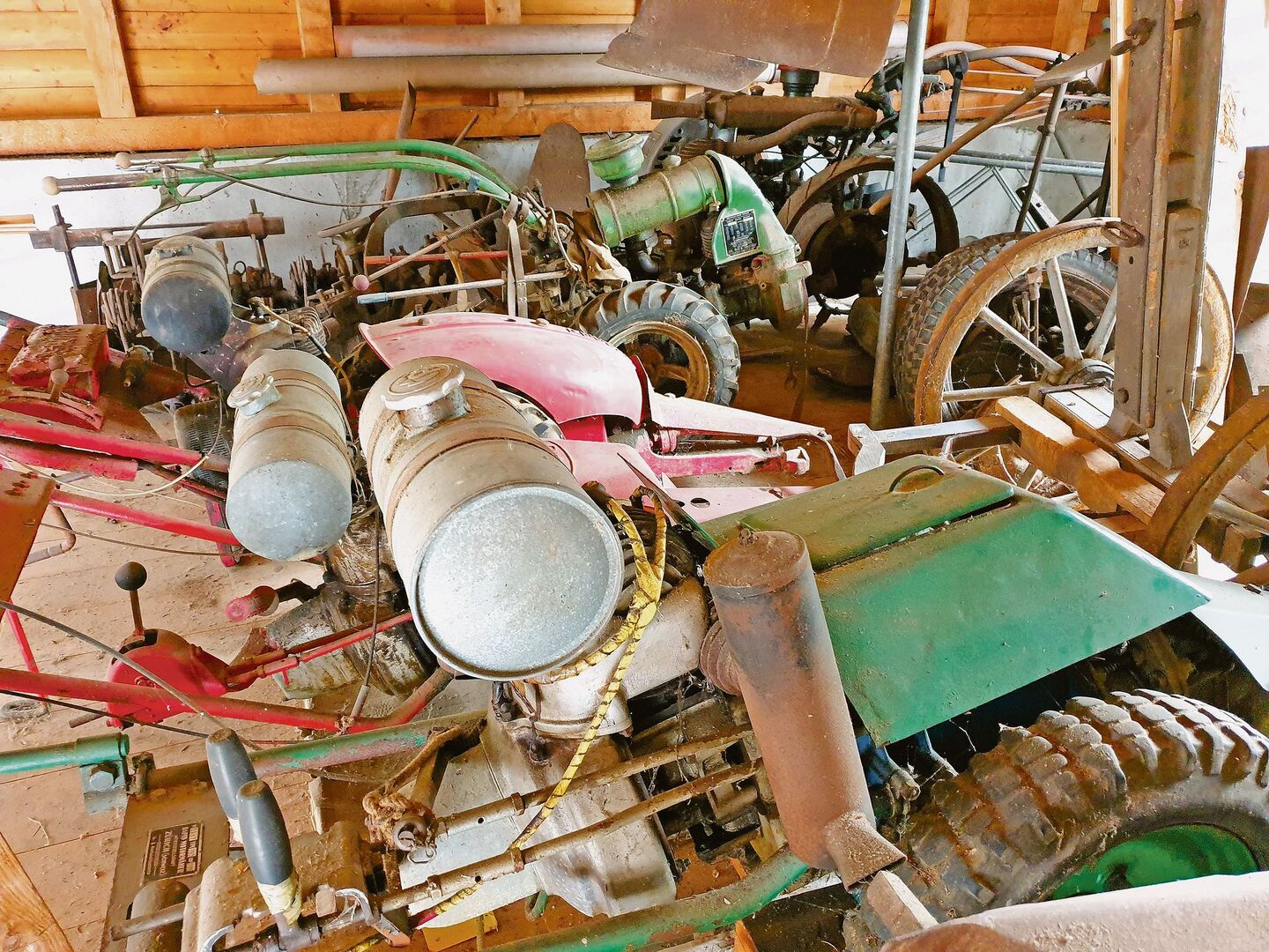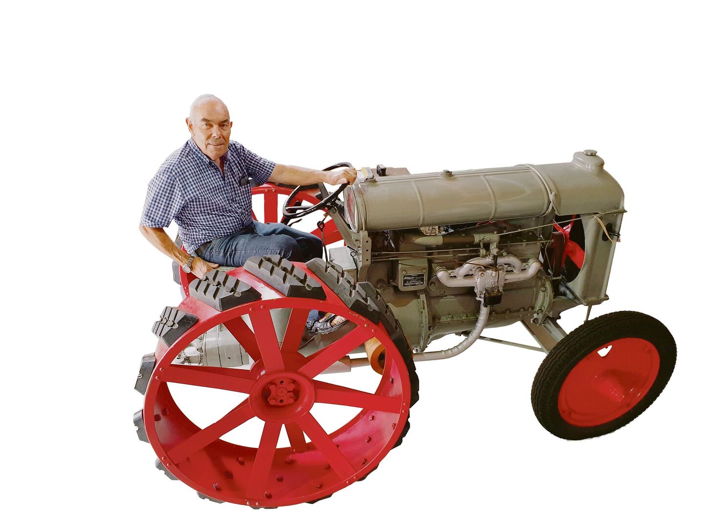 Der Fordson-Traktor, Jahrgang 1927, läuft gerade nicht an, wegen des Schneckengetriebes lässt er sich auch nicht einfach ins Freie stossen. Also präsentiert Paul Müri, Jahrgang 1945, das rot-graue Prachtstück im Schopf. «Zapfwelle hat der noch nicht, aber mit dieser hölzernen Riemenscheibe könnten wir übernächstes Jahr am Oldtimertreffen in Möriken die Dreschmaschine antreiben», freut er sich jetzt schon und schüttelt nebenbei noch die Fordson-Firmengeschichte aus dem Ärmel.