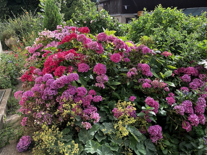 Der Garten ist die Leidenschaft der 68-jährigen Bäuerin. Als sie vor vielen Jahrzehnten auf den Betrieb kam, gab es zunächst einzig den Vorgarten beim Haus. «Diesen konnte ich von meiner Schwiegermutter übernehmen», erzählt Margrit Kreis. «Nach und nach fand ich weitere Standorte zwischen Haus und Hof, die sich für ein paar Blumenkisten eigneten.»