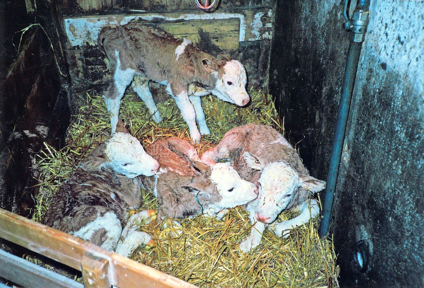 «Ich kann mich noch gut daran erinnern, wie die Assistentin damals ein ungläubiges Gesicht machte und dabei aufgeregt sagte: ‹I gloube, da isch no einisch äs Chäubli drinne›», so Walter Stettler. Und tatsächlich, auch das vierte Kalb kam gesund auf die Welt. Nun lagen sie da im frischen Stroh, ein Stierkalb und die drei Kuhkälber. Sie wurden Edi, Edelweiss, Enzian und Evelin getauft. Im Durchschnitt waren die Kälber zwischen 22 und 28 kg schwer. «Leider waren die Kuhkälber alles Zwitter und nach einer Blutprobe nicht fruchtbar», bedauert Walter Stettler heute noch. Trotzdem waren die Vierlinge eine Sensation, mehrere Zeitungen schrieben damals über das Ereignis.
