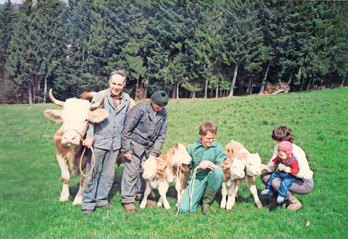 Nach dem besagten Frühstück im April 1988 ging Walter Stettler wieder in den Stall und schaute, wie weit Erika mit ihrer Geburt vorangekommen war. «Mit eigenen Händen kontrollierte ich die Lage, spürte aber nur Beine. So viele Beine, dass ich nicht wusste, zu welchem Kalb sie gehörten», weiss Walter Stettler noch. Das war eindeutig ein Fall für den Tierarzt. Ohne lange zu zögern, musste Hilfe her. Kurze Zeit später fuhr der Tierarzt vor, in Begleitung seiner Assistentin. Der Profi wusste sofort, dass da wohl mehr als ein Kalb im Bauch von Erika schlummerte. Ohne grosse Komplikationen lagen da plötzlich drei Kälber im Stroh. «Der Tierarzt sagte damals noch zu seiner Assistentin: ‹Reck o no einisch iche u lueg, ob da aus i der Ornig isch›.»