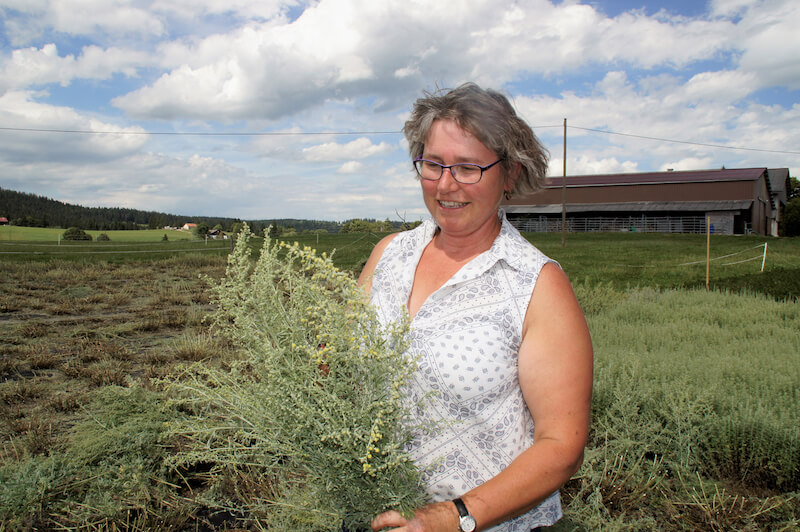 Marlise Baur produziert seit 10 Jahren Wermut für Absinth, der auch Grüne Fee genannt wird. Seit den 90er Jahren ist sie mit ihrem Mann im Val-de-Travers (Kanton Neuenburg) heimisch. "Ich hatte schon immer Freude an Kräutern", erzählt Baur. Da früher noch Lehrlinge auf dem Hof angestellt waren und ihr Mann Heinz ebenfalls voller Tatendrang war, wollte sie ein Projekt für sich starten: "Obwohl es immer etwas zu tun gab, wollte ich mehr."