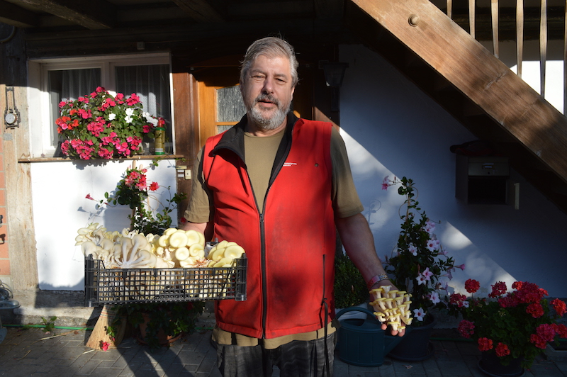 "Früher habe ich bei einer grossen Versicherungsgesellschaft gearbeitet", erzählt Lorenz Laubscher. Plötzlich merkte er aber, dass die Produkte, welche er verkaufte, nicht handfest sind, sondern eher "Luft". Er wolle die Leute doch nicht anlügen, meint der grosse stämmige Mann und schaut ganz traurig. In seinen braunen Augen ist viel Lebensfreude zu entdecken, doch auch eine grosse Kraftlosigkeit. "Man muss immer wieder aufstehen, wenn man im Leben einen Rückschlag erleidet", sagt Laubscher. Vor einigen Jahren erlitt er einen schweren Autounfall. "Heute bin ich zu 50 Prozent arbeitsunfähig und kann nur noch begrenzt körperlich arbeiten. Deshalb konzentriere ich mich vor allem auf die Vermarktung der Pilze, während meine Frau die Kultivierung und Pflückarbeit übernimmt", meint Laubscher, seine Stimme ist rau und weich gleichzeitig. Er erinnert an einen Lehrer, wenn er spricht und zeigt und erklärt.