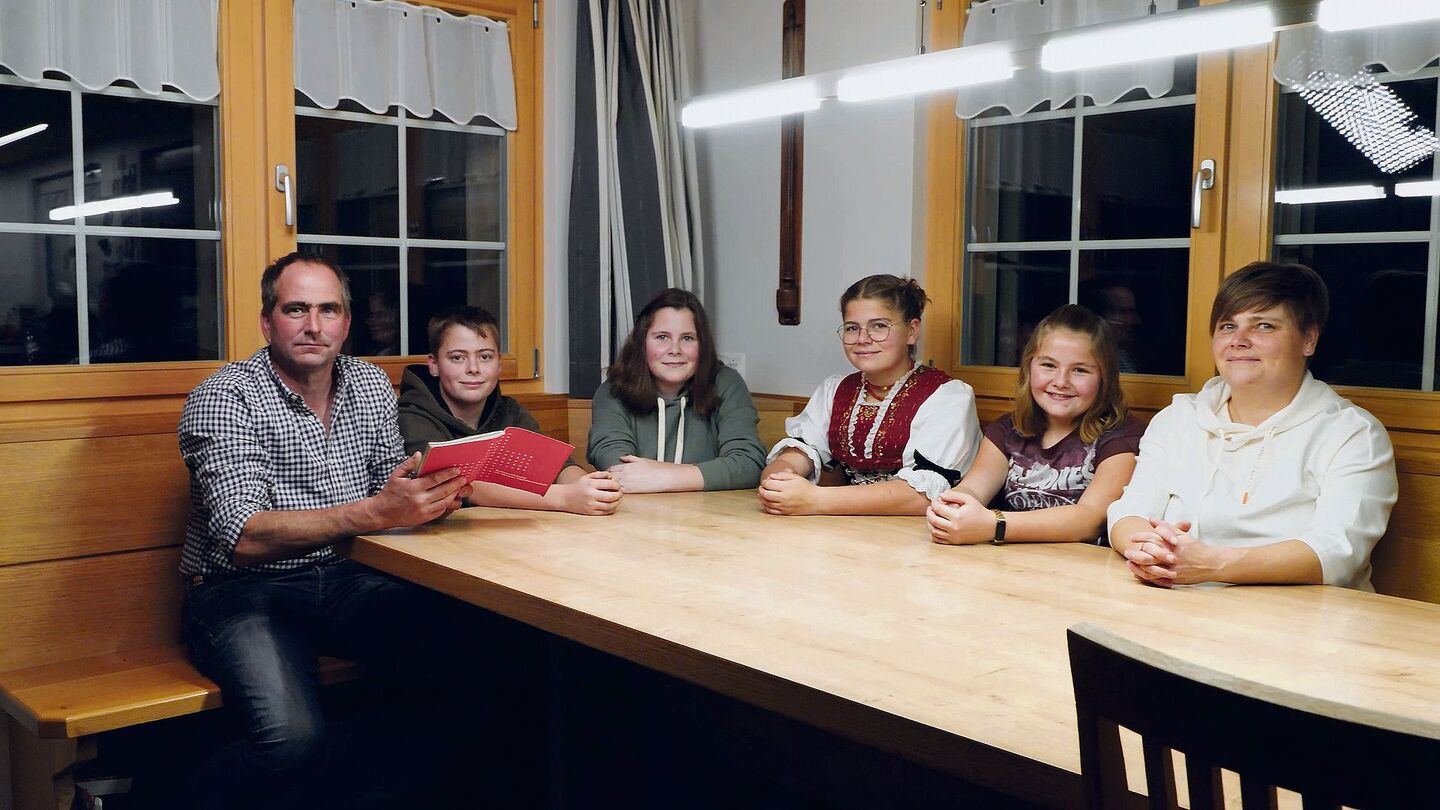 Susanne und Adrian Sutter leben mit ihren fünf Kindern in Brülisau AI. Zu ihrem Betrieb gehören 25 Milchkühe und 60 Mastjager. Die Eltern und die vier älteren Kinder lasen die Artikel 1 und 116 am Küchentisch vor.