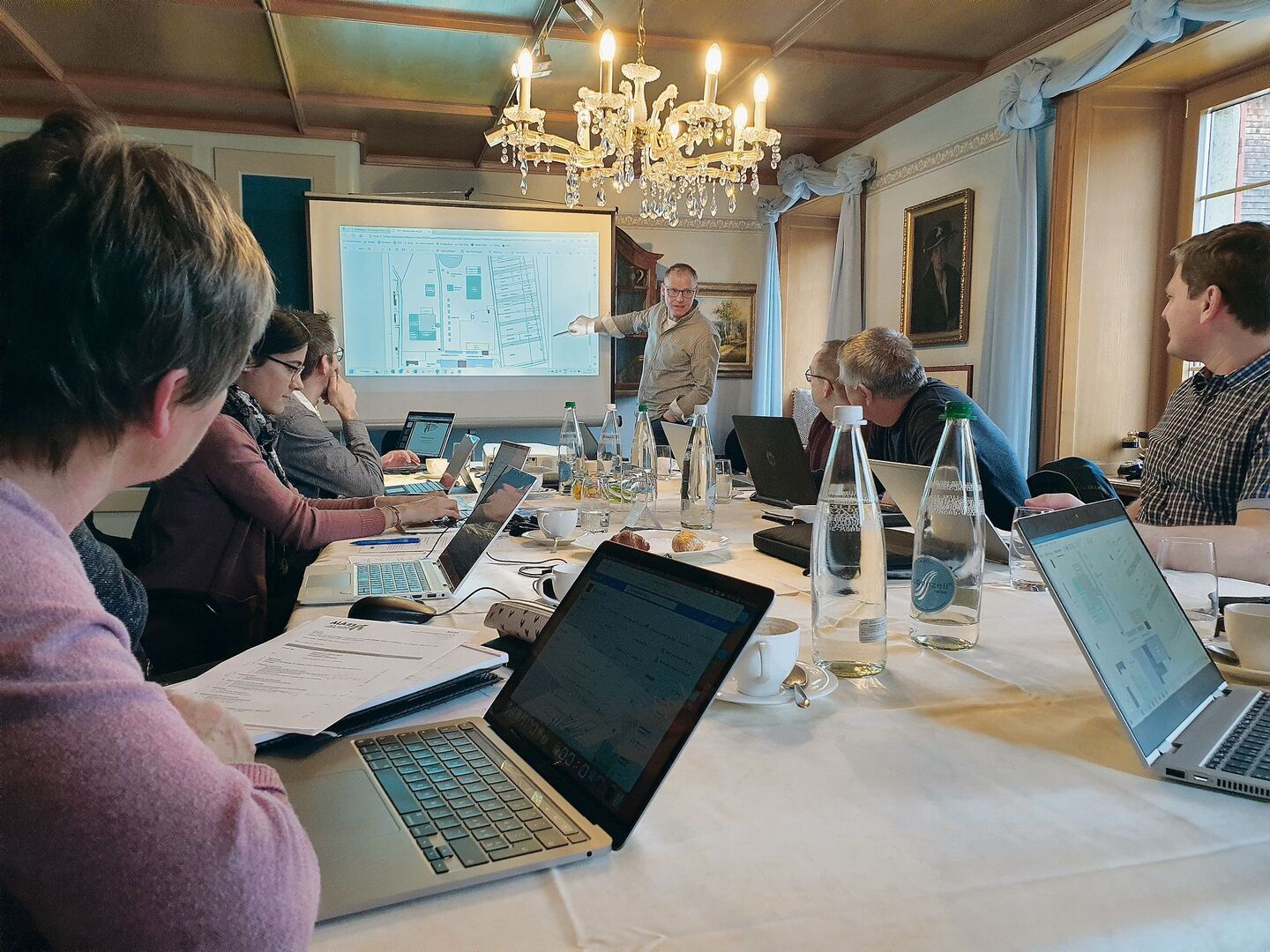 Vorne auf der Leinwand kreuzen sich auf einem Situationsplan zahlreiche Linien mit farbigen Flächen. Für die Männer und Frauen am Sitzungstisch ist das kein Durcheinander. Sie sehen Fusswege auf dem Festgelände, von Ökoelementen gesäumt, die an erntereifen Gemüsefeldern und Getreide vorbeiführen zur Obstanlage und zur Mutterkuhweide. Sie sehen Tausende von Besucherinnen und Besuchern ihren Weg finden zu Verpflegungsständen, Tierzelten und zur Arena, sie platzieren in Gedanken an geeigneten Stellen Informationsplakate und Toiletten und koordinieren die Transportwege von Ausstellern.