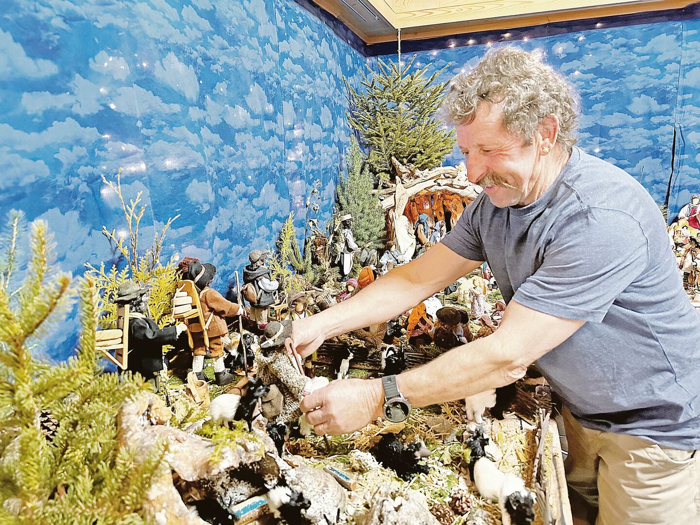 Fürs Zubehör wie Stöcke, Laternen, Tische, Bänke und vieles mehr ist Ehemann Aluis Cavegn zuständig. Er zimmert und bastelt dieses mit ebenso viel Liebe zum Detail wie seine Frau. Zudem sorgt er für das Aufstellen der Krippenlandschaft. [IMG 5]