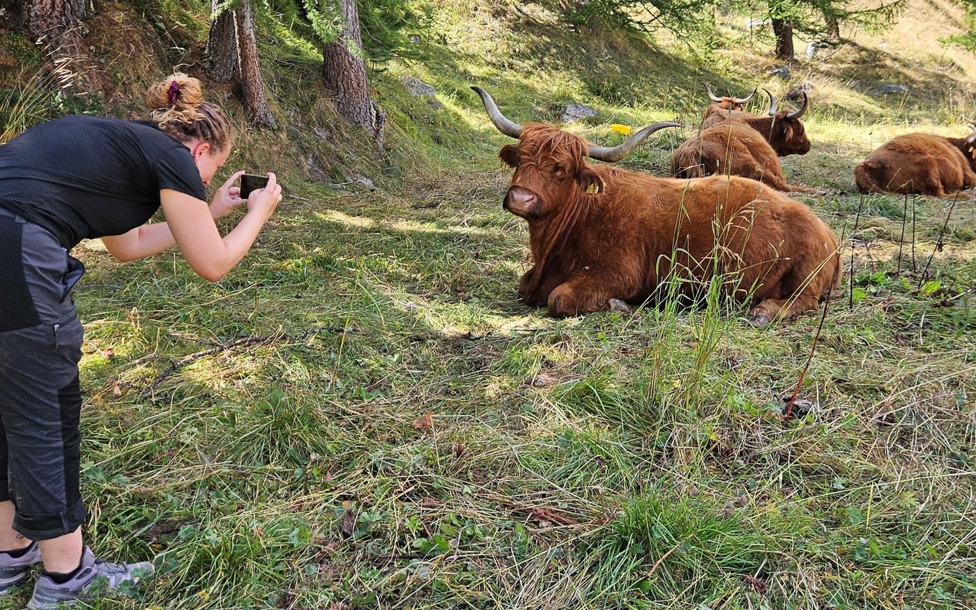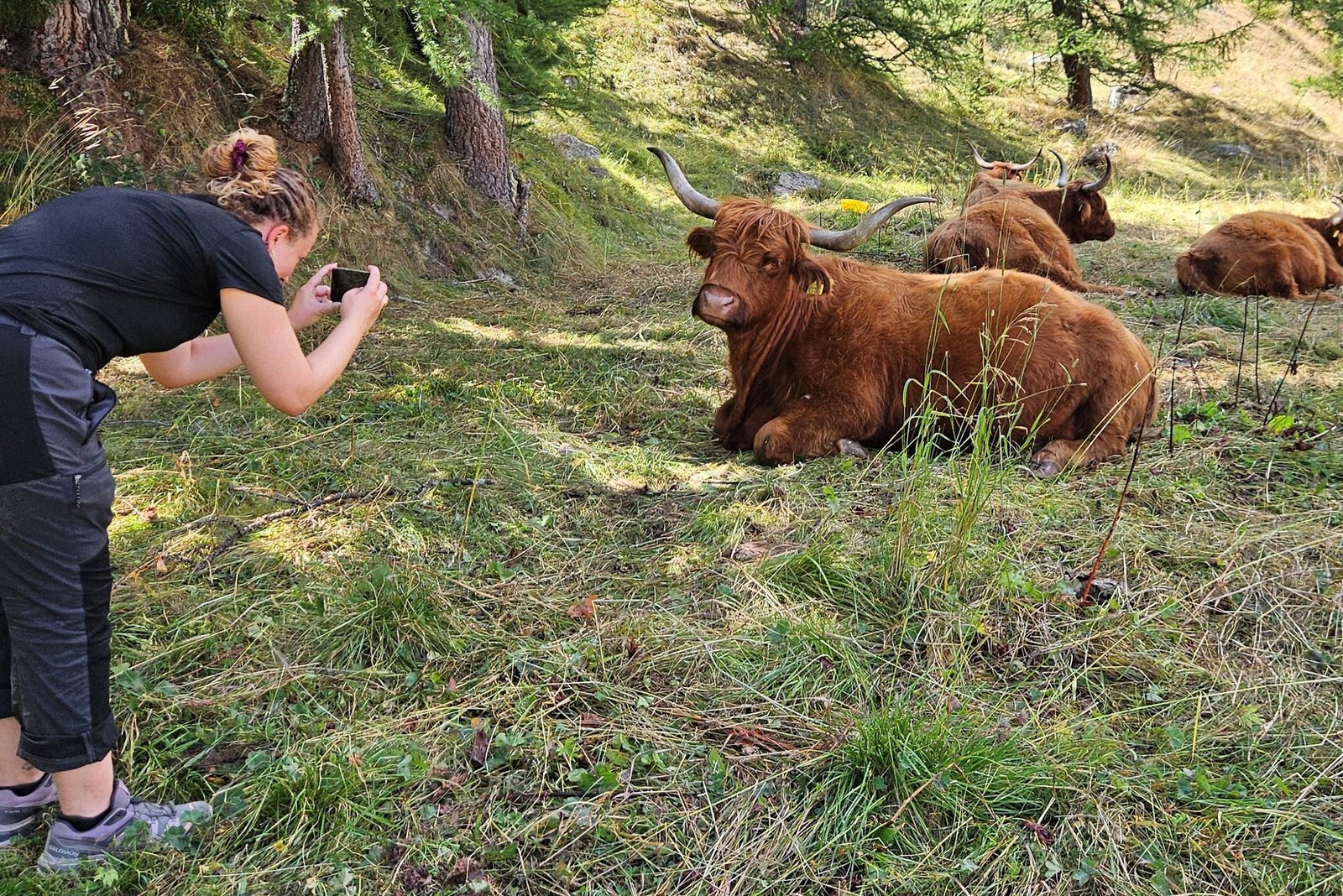 Die «Schotten» sind nicht nur anspruchslos, was das Futterangebot angeht, sie sind auch äusserst genügsam. Das müssen sie auch sein, denn durch die Weiden verlaufen unzählige Wanderwege. Nur die wenigsten der Touristen in Saas-Fee hätten eine Ahnung, wie Mutterkühe mit Kälbern reagieren könnten. Für die Mehrheit seien die Tiere einfach ein beliebtes Fotosujet. «Unser Vieh ist aber den Kontakt mit Touristen von Kalb auf gewohnt, sodass wir noch nie Probleme hatten», erklärt Sandra Wyer-Supersaxo. Entsprechend besorgt blickt sie auf die vermehrte Wolfspräsenz in der Region: «Würde der Beschützerinstinkt der Kühe infolge Kontakt mit Grossraubtieren wieder stärker ausgeprägt, hätte das auf Tourismus und Weidehaltung sehr negative Auswirkungen.»