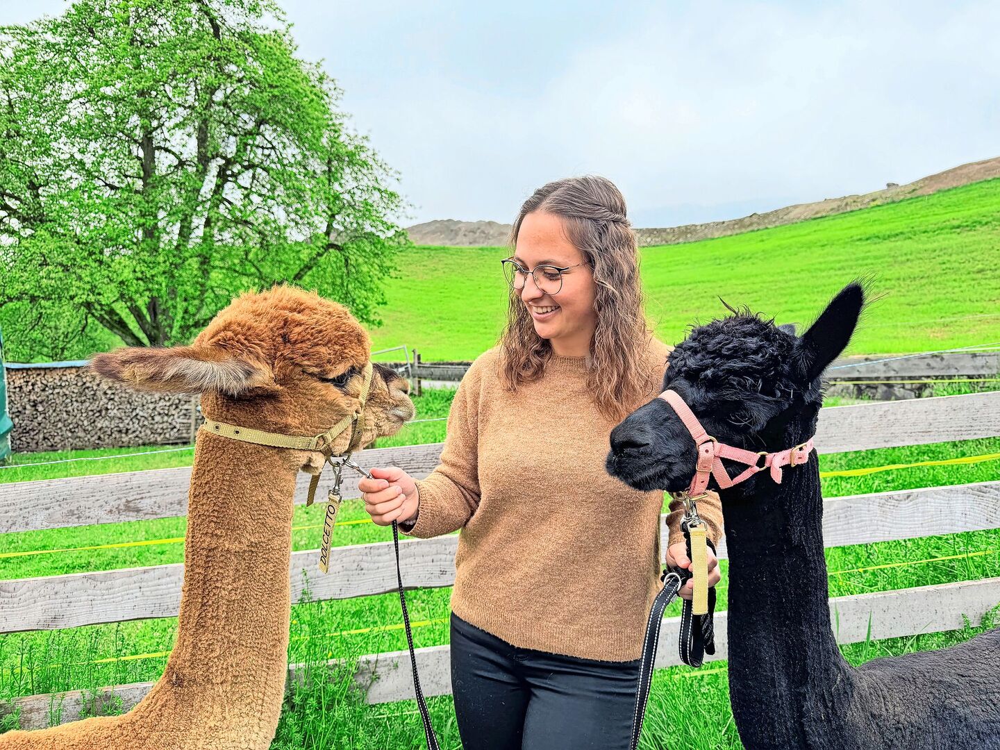 Ein weiterer Betriebszweig ist die Alpakazucht. Die Familie startete 2015 mit vier Alpakas, zwei Stuten waren schon trächtig. «Die Tiere waren anfangs nicht ans Halfter gewöhnt. Sie waren scheu und wir mussten ihr Vertrauen gewinnen», blickt Sara Flühler zurück. Um alles richtigzumachen, besuchten sie und ihre Mutter Lucia Flühler Kurse.
