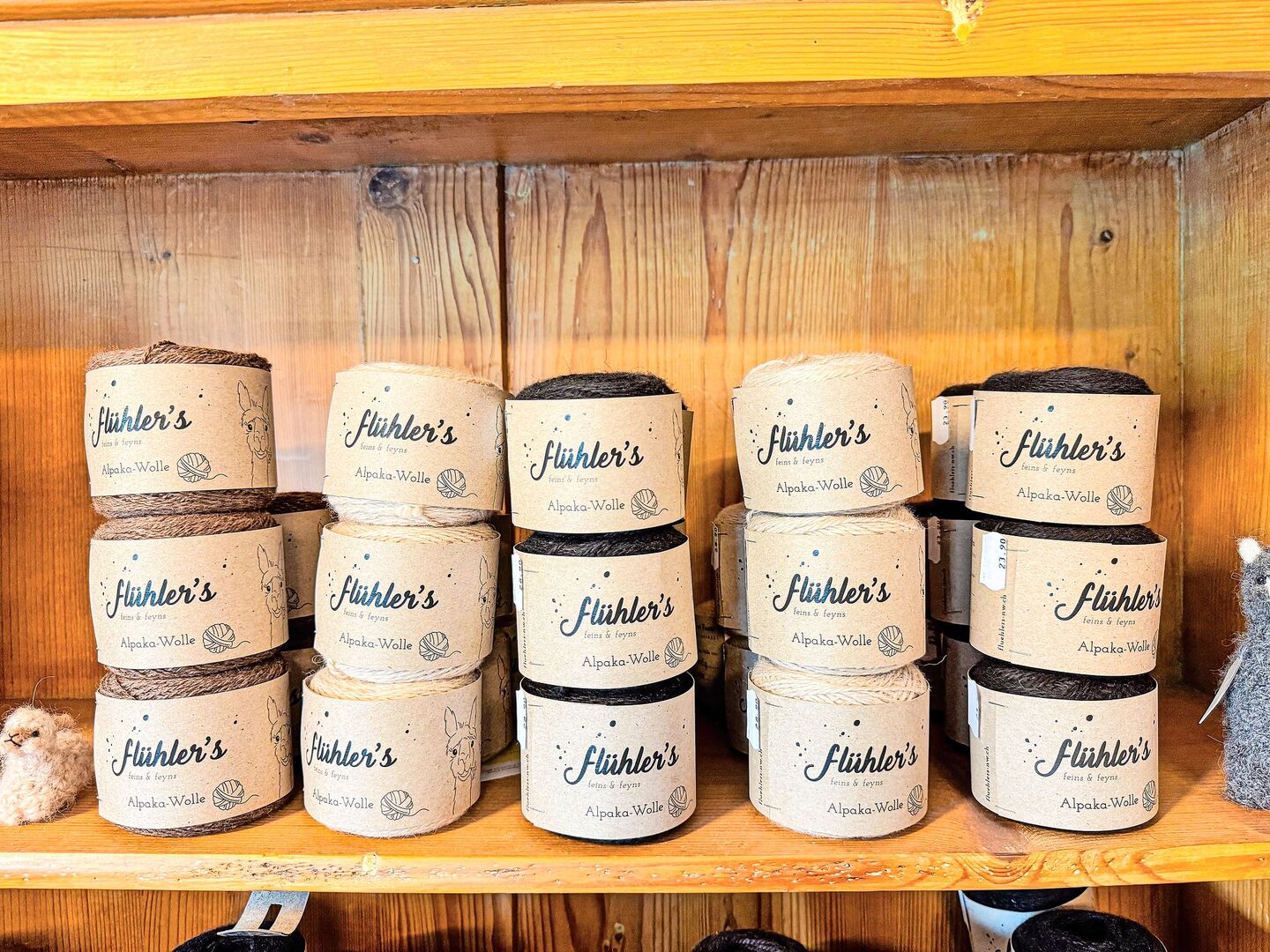 Einmal im Jahr, im April, werden die Tiere geschoren. Die Wolle wird ausschliesslich in der Schweiz weiterverarbeitet. Die erste Qualität ergibt Strickwolle und aus der zweiten Qualität entstehen Duvets. Zudem «verlismet» Sara Flühlers Grossmutter die Wolle zu Produkten wie Kinderfinkli, die sie im Hofladen anbieten. Neu gibt es auch Naturkosmetik aus dem Keratin der Alpakawolle.