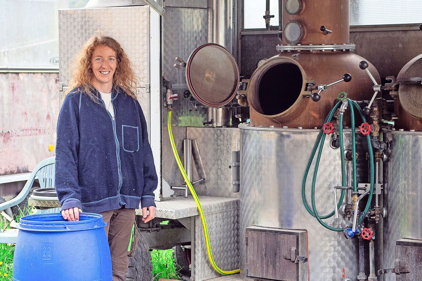Zur Lohnbrennerei kam die vielseitige Landwirtin eher zufällig. Sie wurde, als sie ihre Äpfel in die Mosterei brachte, angefragt, ob sie die Brennerei übernehmen wolle – der Vorgänger habe altershalber aufgehört. So habe sie dann am Inforama den entsprechenden Kurs besucht und die mobile Brennerei auf den Hof geholt. Nun brennt sie als Angestellte bei der Obstbaugenossenschaft für Landwirt(innen), aber auch für Privatpersonen. Da «fuchse» sie sich aber immer noch ein, damit sie organisierter und effizienter werde, damit es sich auch für sie lohne.