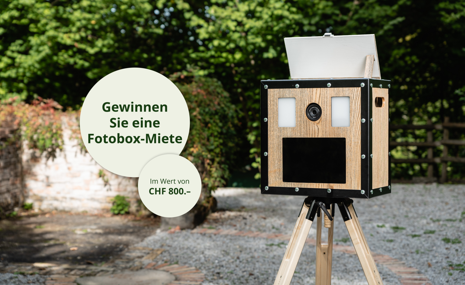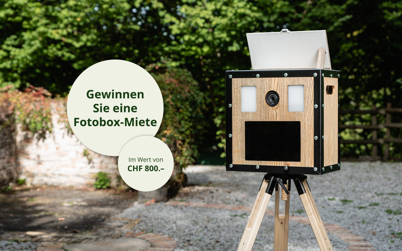Gewinnen Sie eine Fotobox-Miete inkl. Zubehör im Wert von CHF 800.- für Ihren nächsten Event. Perfekt für Hoffeste, Vereinsfeiern oder Hochzeiten – und schaffen Sie bleibende Erinnerungen für Sie und Ihre Gäste.