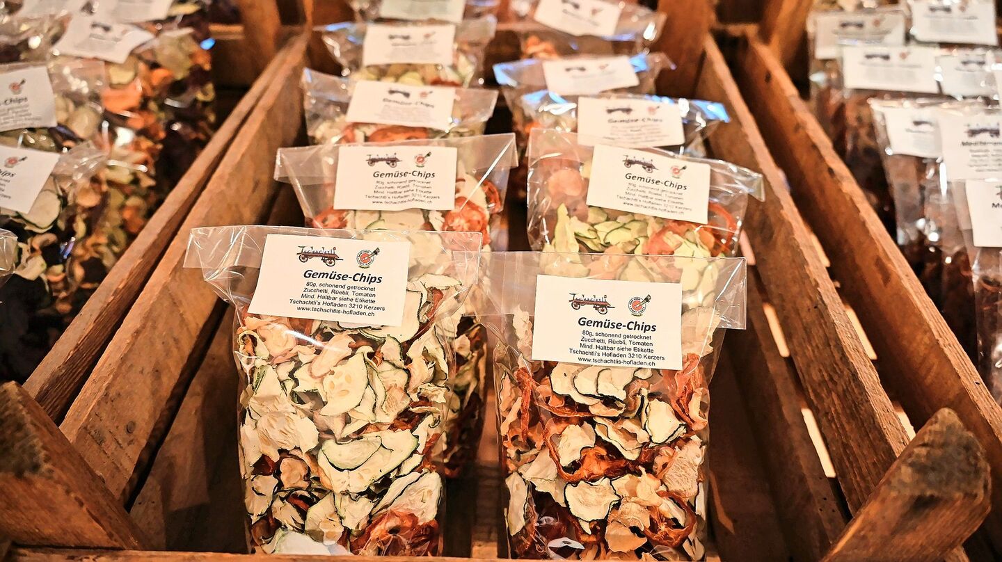 Gestartet ist der Trocknungsbetrieb mit einem kleinen Automaten, in dem Gemüse vom eigenen Betrieb zu Suppengemüse verarbeitet wurde. Dass sie die Waren am besten an Märkten an den Mann und die Frau bringen müssen, war dem Paar ebenfalls früh bewusst. Beim Verkauf unterstützt Jakob Tschachtli den Betrieb seiner Frau. Dabei ist ihm die perfekte Präsentation genauso wichtig wie seiner Frau das Verpacken. «Für mich muss es perfekt sein, sonst ist es nicht gut genug», macht er deutlich.