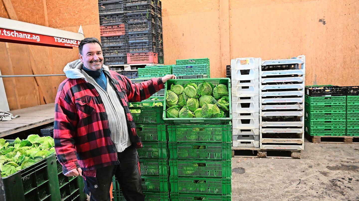 Betriebsleiter Tschachtli Biogemüse: Jakob Tschachtli. Die Gründung einer GG mit zwei Söhnen ist in Planung.