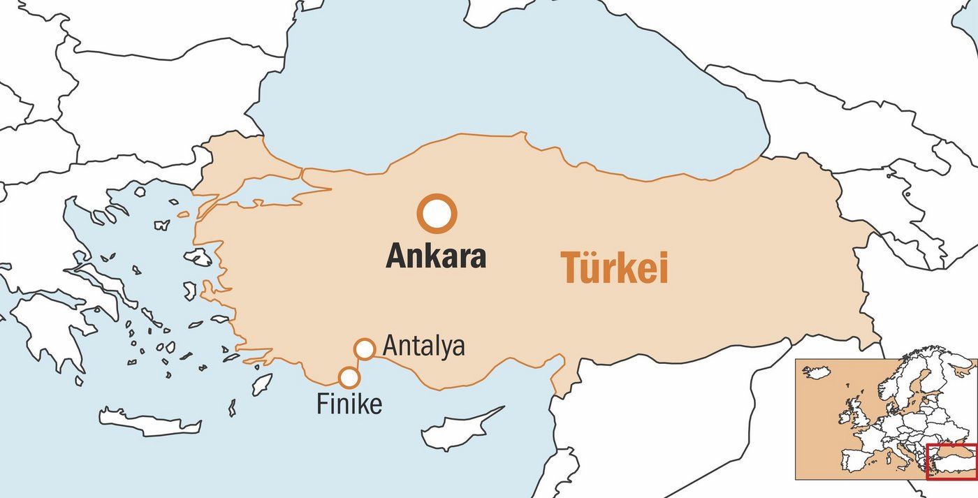 Entlang der lykischen Küste erstreckt sich das gigantische Taurusgebirge bis nach Finike. Die Hafenstadt liegt etwa 110 km südwestlich vom touristisch geprägten Antalya entfernt und ist eines der wichtigsten Agrargebiete der türkischen Mittelmeerküste – «denn hier scheint an 340 Tagen die Sonne», begründet Ali Koyak, unser Reiseleiter auf der Leserreise durch die Südtürkei. Aber auch die fruchtbaren Böden in dieser Region tragen dazu bei.