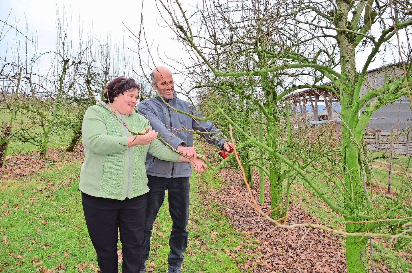 Noch ist es winterlich und Andreas Hedinger nimmt die letzten Arbeiten beim Baumschnitt vor. Susanne Hedinger und ihr Mann gönnten sich im Januar eine Ferienwoche in Österreich, um Energien zu tanken. Der Arbeitsalltag hat die beiden aber rasch wieder eingeholt, denn während unseres Gesprächs klingelt immer wieder das Telefon, es treffend laufend Bestellungen für Äpfel ein.