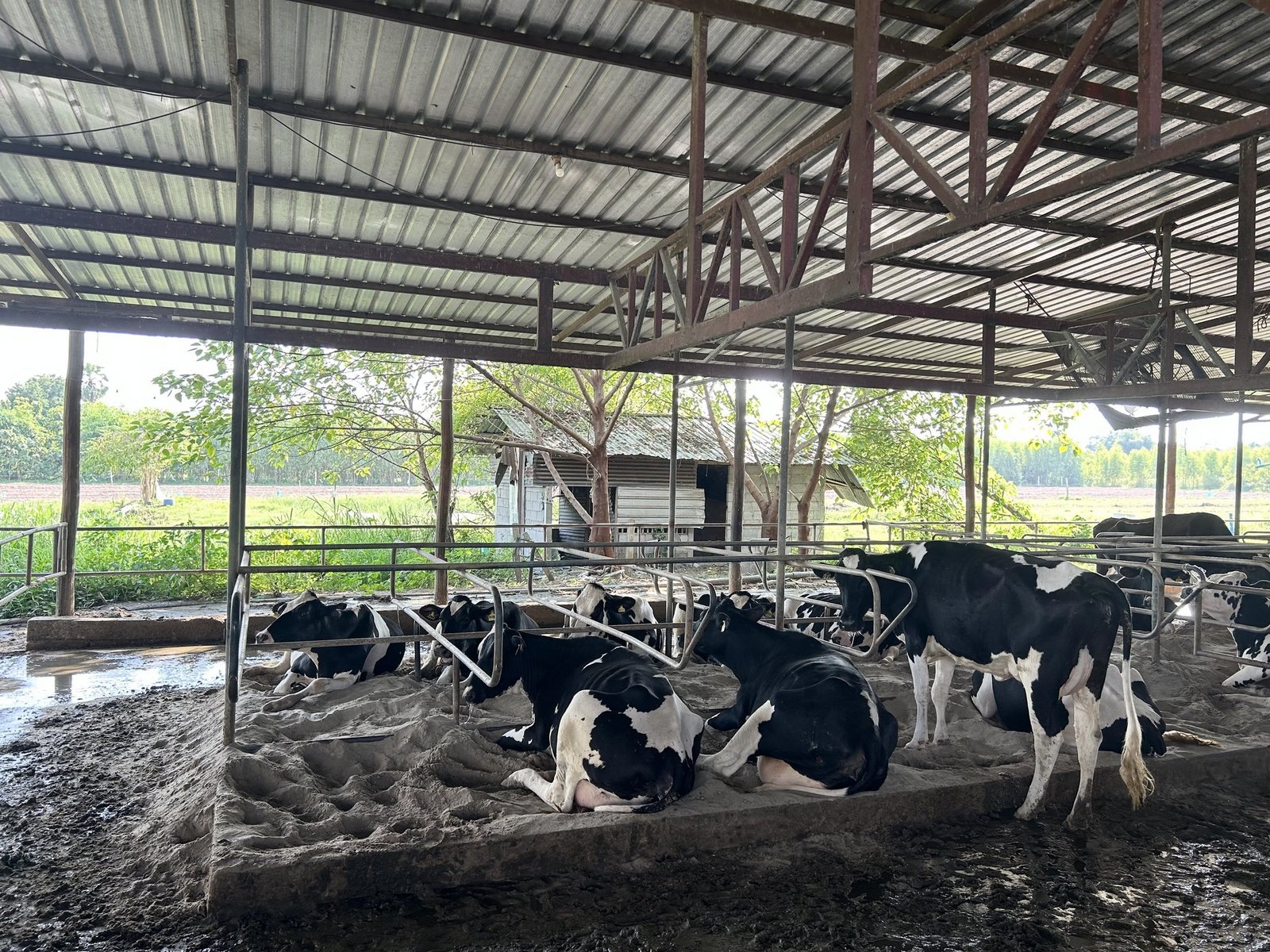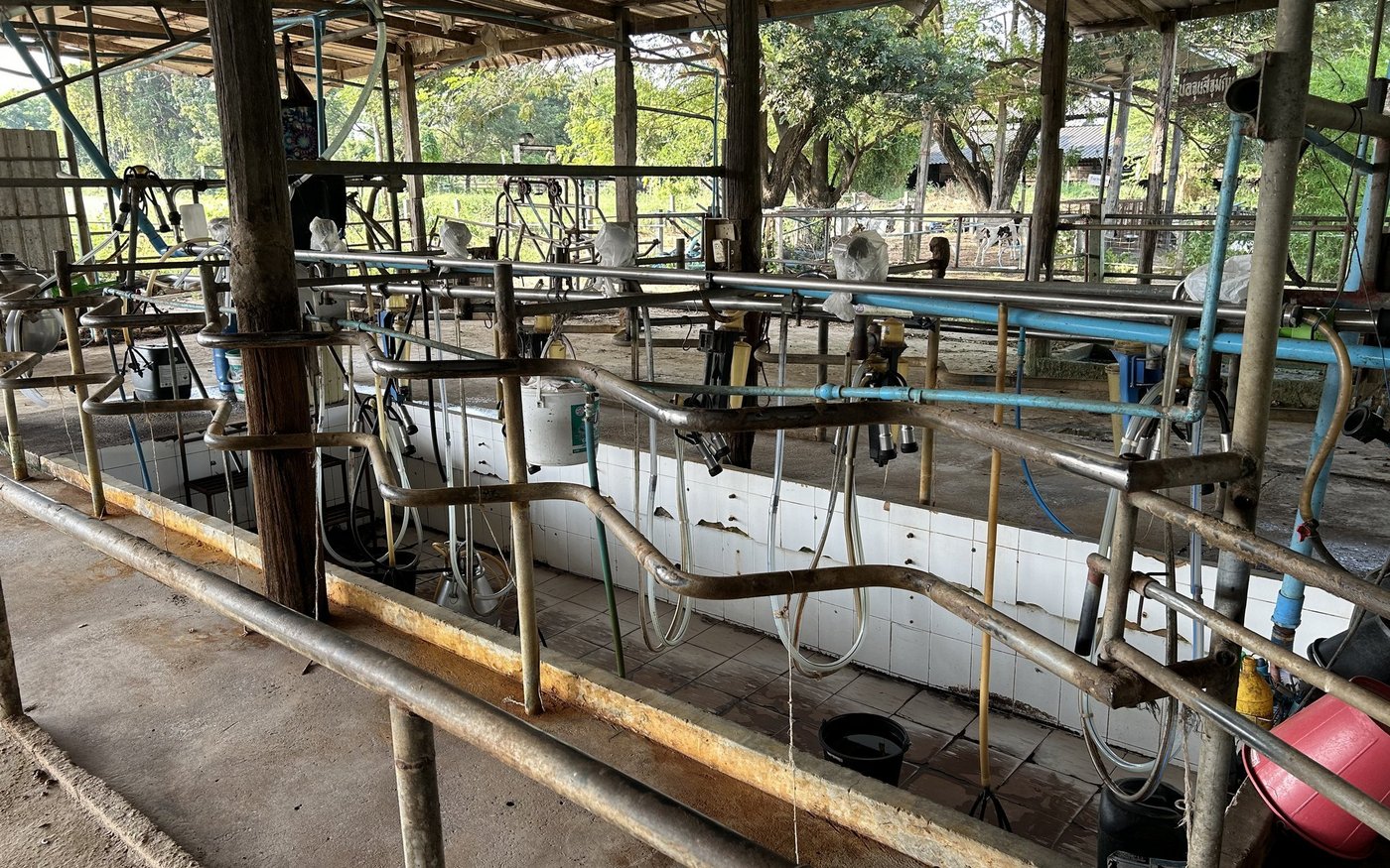 Nach der Stärkung führt uns ein junger Mann durch den Laufhof hinter dem Wohnhaus. Die Kühe liegen gemütlich in ihren Boxen, die mit Sand eingestreut sind, damit es nicht zu heiss wird, bei einer Aussentemperatur von 30 Grad. Die Frage, wo denn die Milch gelagert werde, kommt auf, als kein Tank neben dem Melkstand zu finden ist. «Der Milchlastwagen kommt, schliesst an, wartet, bis wir fertig gemolken habe,n und fährt weiter», erzählt uns der junge Mann mit einem herzlichen Lächeln. Das Staunen der Teilnehmenden ist gross.