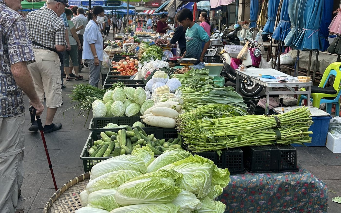 Für den Besuch auf dem Markt in Uthai Thani, den wir frühmorgens besuchen, instruiert die thailändische Reiseleiterin und bereits vorher, dass wir einen Geruch wahrnehmen oder eine Zubereitungsart sehen werden, die wir uns nicht gewöhnt sind. Wir sollen nicht die Miene verziehen oder die Nase zuhalten, da dies als unfreundlich angesehen wird, sondern einfach weitergehen. Gespannt schlendern wir durch die enge Marktgasse und bewundern auf allen Seiten die Ware, die zum Verkauf angeboten wird.