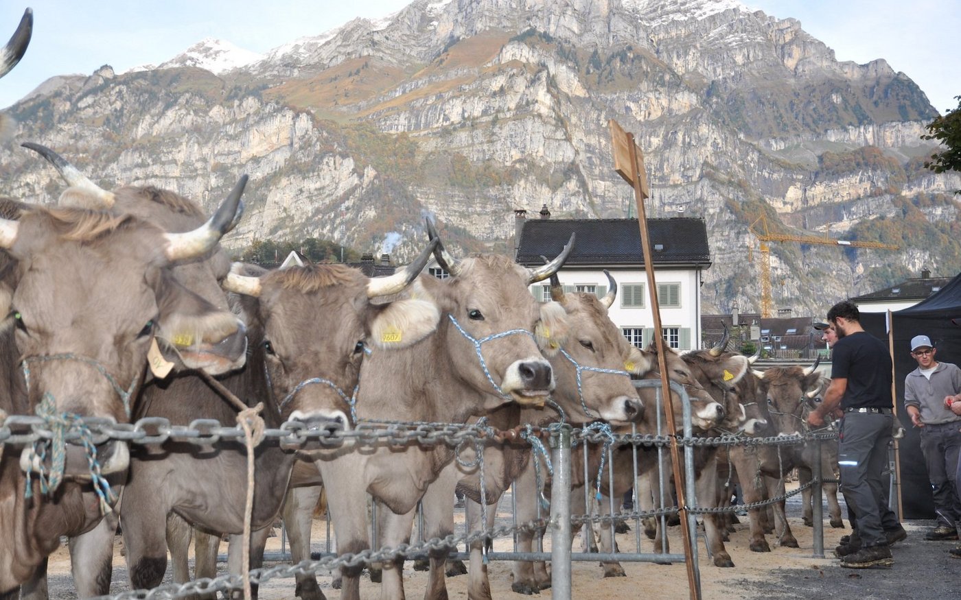Dass der berühmteste Glarner Muni Zibu die Olma mit seiner Anwesenheit beehrt, störte das Ersatztier Hägar herzlich wenig: Stolz schritt er mit der rund fünfzigköpfigen, festlich geschmückten Herde von Familie Horner frühmorgens durch Glarus. Später präsentierte er sich zusammen mit einem Nachkommen von Zibu und vier weiteren stattlichen Stieren im Ring. Nebst der Horner-Herde gibt es vermehrt wieder Züchterfamilien, die traditionell zu Fuss mit ihren Tieren nach Glarus reisen. Familie Figi von der Weisswand ob Luchsingen etwa zog frühmorgens mit Trycheln zu Fuss durch den halben Kanton und nach Schauende zurück.