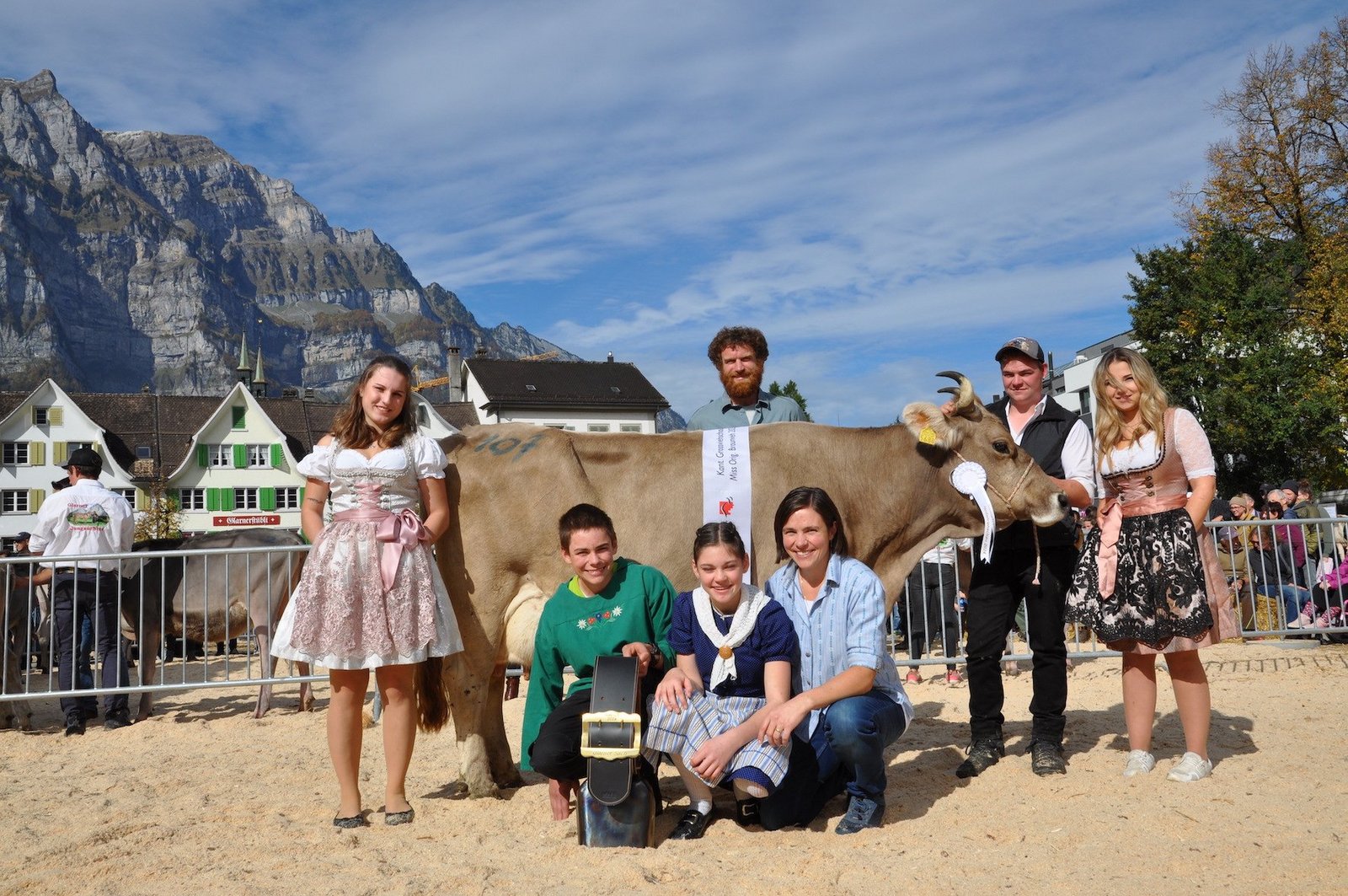 Einen ganz besonderen Titel durfte Thomas Hefti-Landolt aus Linthal mit nach Hause nehmen: Seine Kuh Emmi (Edi) war nicht nur die schönste Original Braune auf dem Schauplatz, sie holte sich ausserdem die Ehrenerwähnung des Jakob Schneider Fonds. Der an eigene Bedingungen – z.B. Alpung, kantonal gezüchtet – geknüpfte Fonds wurde Emmi bereits dreimal verliehen.