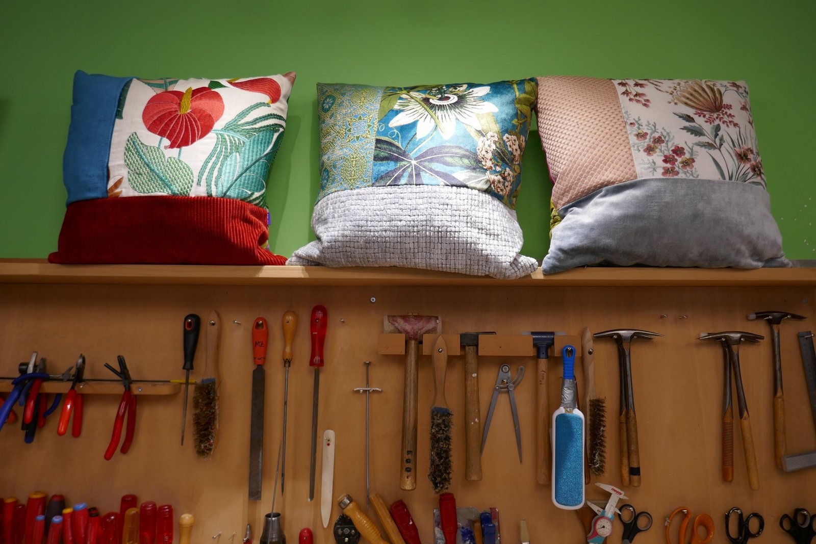 Im Atelier von Monig Z’Rotz fallen die bunten Kombinationen von Stoffen an Kissen und neu überzogenen Möbelstücken auf. Sie scheint ein besonderes Flair für stimmige Farbkompositionen zu haben. «Das ist nicht einfach nur Talent», erklärt sie. Sie hat an der Hochschule Luzern studiert und mit einem Bachelor in Fine Arts, Design & Kunst abgeschlossen.