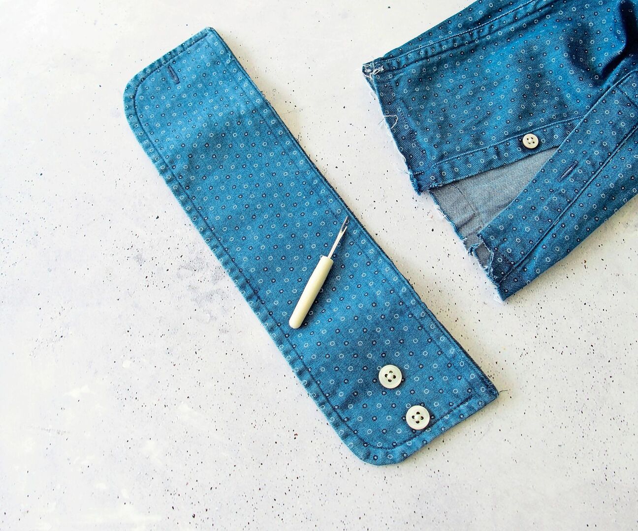 Upcycling bedeutet: Anstatt etwas wegzuwerfen, kreiert man etwas Neues daraus. Aus einem einzigen ausgedienten Hemd oder einer ausrangierten Bluse lassen sich drei Dinge herstellen: eine Kissenhülle und zwei Verpackungen für Flaschen oder zwei Minitäschchen - oder eine Kissenhülle, eine Flaschenverpackung und ein Mini-Täschchen.