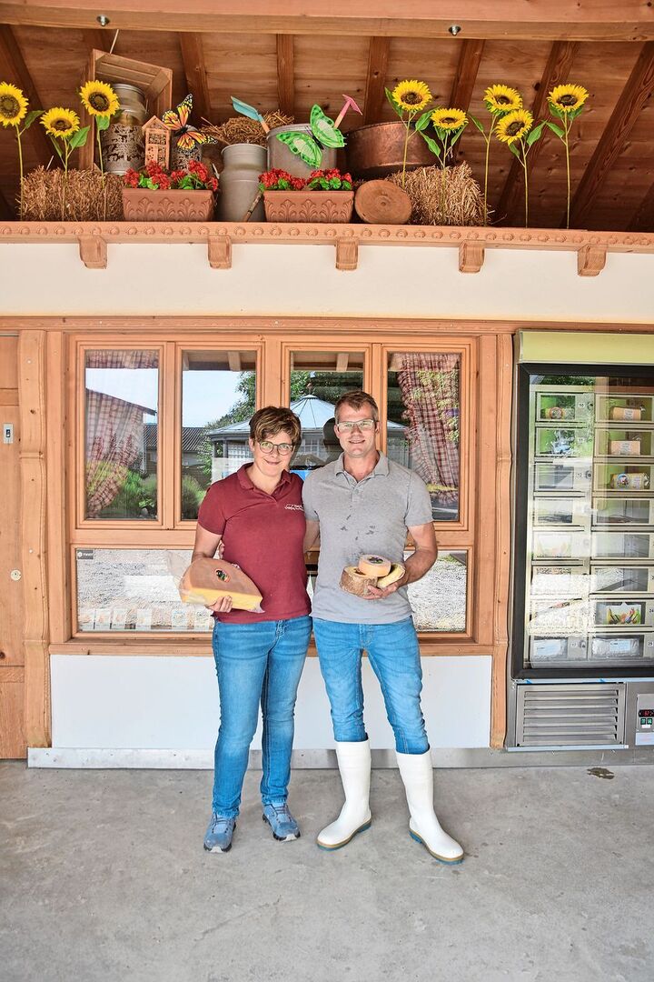 Heute ist die Hofkäserei das Herzstück des Betriebs. Schmids verkäsen jährlich rund 50 000 Liter ihrer Rohmilch zu Halbhart-, Hartkäse und Weichkäse, das gibt rund fünf Tonnen Käse im Jahr. «Einmal in der Woche wird gekäst, an den anderen Tagen holt die Mooh die Milch ab», so die beiden. Reich werde man beim Käsen nicht, es komme immer auch darauf an, welchen Stundenlohn man für sich rechnet. «Umgerechnet erwirtschaften wir so einen Milchpreis von rund 80 Rappen pro kg Milch», so der Betriebsleiter. «Maya und ich haben ein Flair für die ganzheitliche Produktion vom Grashalm bis zum genussfertigen Käse, noch mehr bis hin zum zufriedenen Kunden», sagt Schmid. Diese schätzen es, solch nachhaltige Milchprodukte aus ihrer nächsten Nähe kaufen zu können. Diese Lebensaufgabe ist für das Betriebsleiterehepaar sowohl sinnerfüllend als auch herausfordernd.