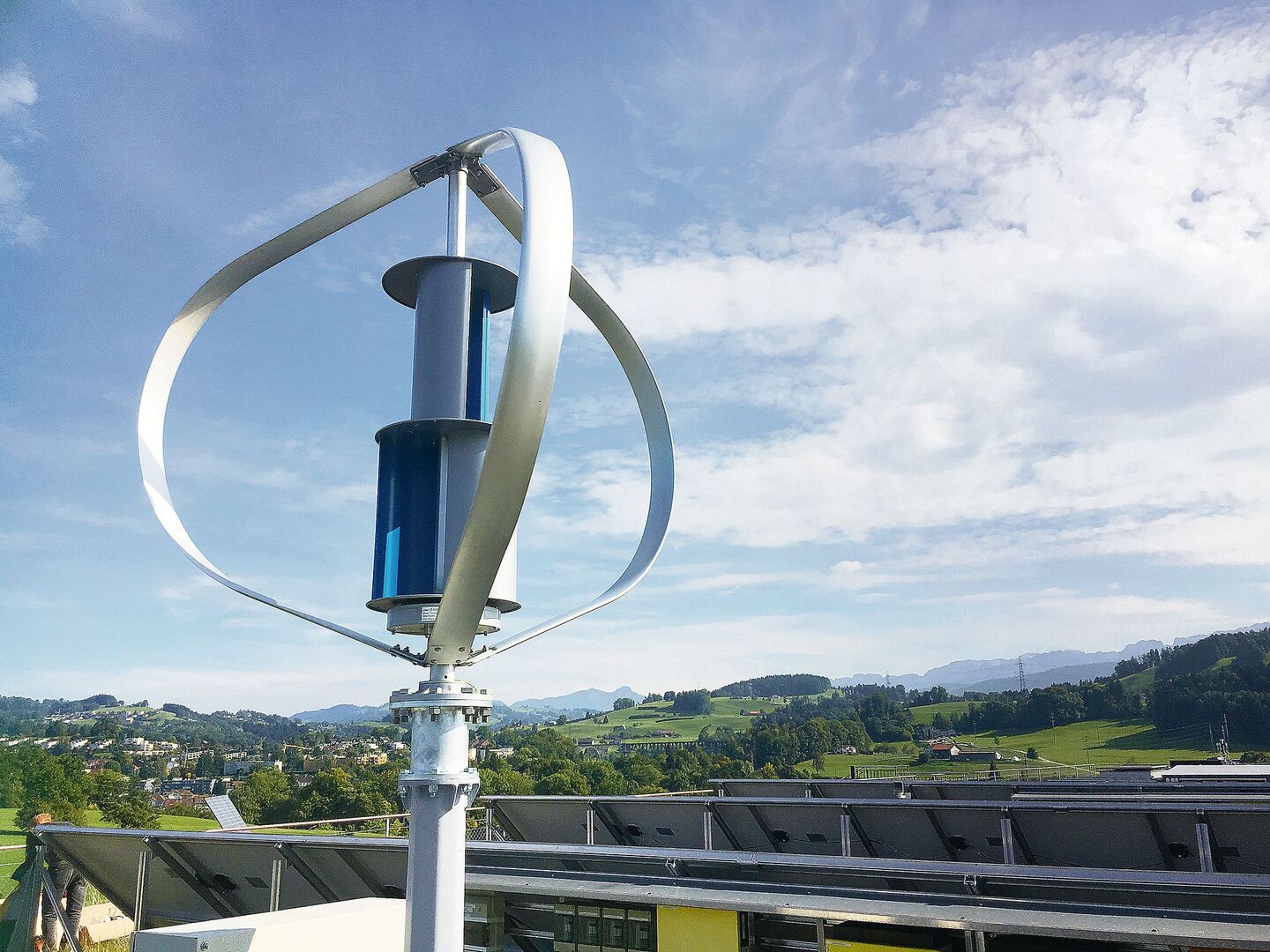Vertikale Windräder von New Green Tec können auf Flach- oder Giebeldächern oder auf Säulen installiert werden. Ausserdem gibt es frei stehende Dreibeinmodelle und das Windrad wird jeweils mit Solarpanels am Sockel ergänzt, um Wind- und Sonnenstrom zu kombinieren. In guten Lagen sei eine Jahresproduktion von 1000 kWh mit einer 700-Watt-Windturbine realisierbar. Mit 4000 bis 6000 Franken pro kW Nennleistung ist das System zwar teurer als eine Solaranlage, dafür können die Windräder aber besser ganzjährig ausgelastet werden und liefern insbesondere im dunklen Winterhalbjahr lokale Energie.