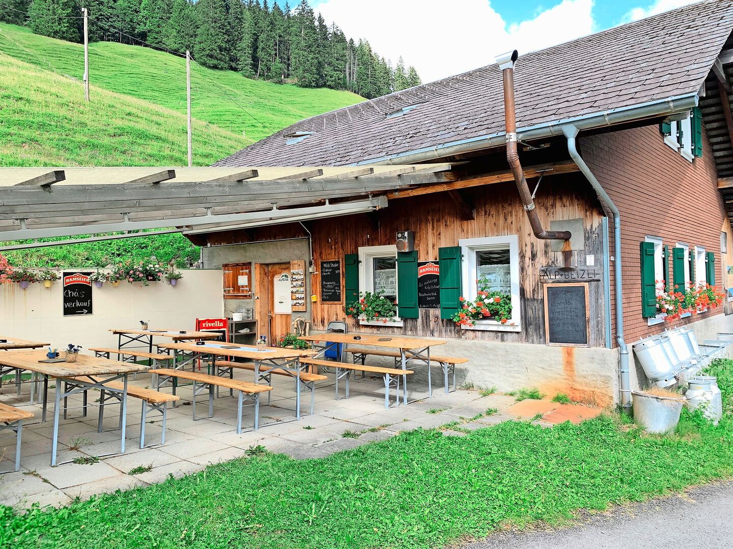Mit ihrem Alpbeizli gehörten Müllers 1995 zu den Ersten im Kanton. Sie wurden von Käsekunden dazu animiert, zumal die Alp auch an einem viel begangenen Wanderweg liegt. So erkundigte sich Urs Müller beim Kanton nach den Bedingungen für eine solche Beiz. Damals habe es dafür aber noch kaum Auflagen gegeben und auch im gleichzeitig vorgesehenen kantonalen Gastwirtschaftsgesetz sei dies noch gar kein Thema gewesen. So brauchte es eine Bewilligung für Gelegenheitswirtschaft, beim Bau des gedeckten Aussenbereichs wurden keine Hindernisse in den Weg gelegt. Einzig der Lebensmittelinspektor schaue hin und wieder vorbei. In der Regel sei das Beizli während der Alpzeit täglich offen, angeboten werden vor allem eigene Produkte wie einfache Käse- und Fleischplättli, aber auch Bratchäs oder selbst gemachte Kuchen und Glace-Coupes.