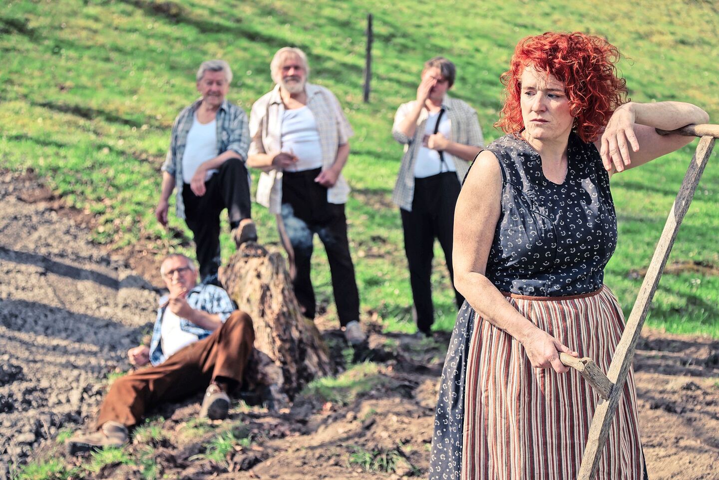 Die Hauptrolle spielt die bekannte Schweizer Schauspielerin Fabienne Hadorn. Sie mimt die Rötele. Die Magd schlägt sich mit stiller Kraft und Ausdauer durchs Leben. Sie hat es schwer, sie ist arm. Noch schwerer machen es ihr die Leute im Dorf. Sie schneiden und verspotten sie, obwohl sie sich nichts hat zuschulden kommen lassen. Das Haar der Rötele – es ist fürzüntrot – habe die Farbe des Teufels, sagen sie.