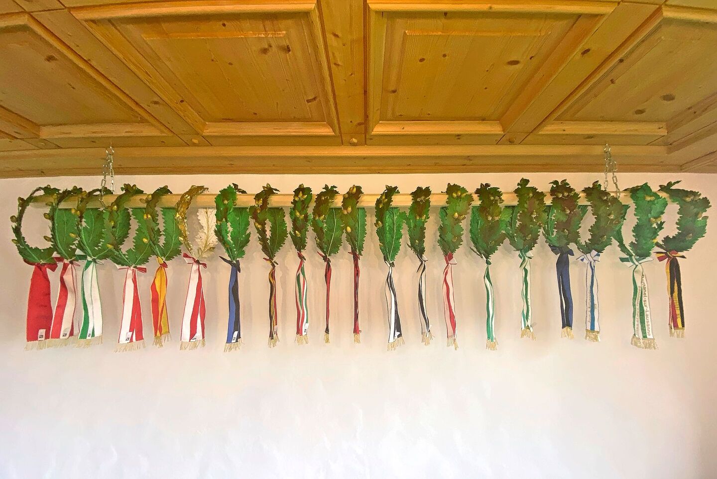 Im Wohnzimmer hängen an einer Stange über dem Sofa 20 Kränze, darunter der goldene, mit dem Isabel Egli zur Schwingkönigin gekrönt wurde. An einer anderen Wand stehen aufgereiht sieben Glocken. Auch ihr Lebenspartner Adrian Schmutz war Kranzschwinger, doch der Schreiner hat mit dem Sport aufgehört. Die beiden lernten sich vor rund fünf Jahren im Krafttraining kennen, und es funkte, obwohl Isabel Egli eigentlich keinen Schwinger als Freund wollte.