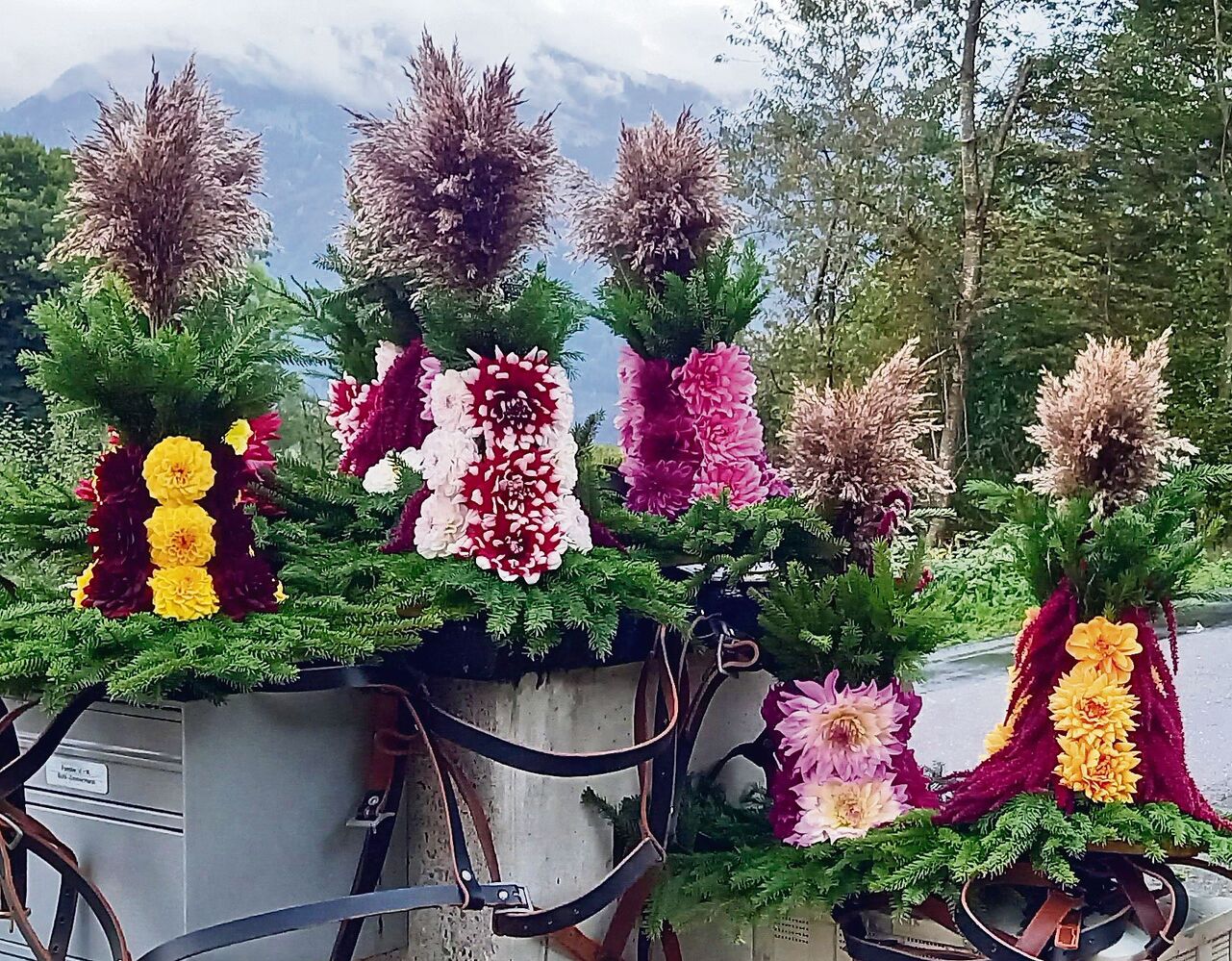 Zu den wichtigsten Tagen im Jahr gehören für Vreni Bohl und ihre Familie die Alpabfahrten und die Viehschauen. Stundenlang stellt sie Blumenschmuck für die Kühe ihres Bruders her. Der Weg von der Glarner Alp Oberfrittern bis zum Heimbetrieb erstreckt sich über etwas mehr als fünf Stunden: «Es ist streng, doch ein unbeschreiblich schönes Gefühl!» Ihr Schwager bewirtschaftet im sankt-gallischen Toggenburg einen Betrieb, dort wird das sennische Auffahren mit Brusttuch und den Schellenkühen zelebriert.