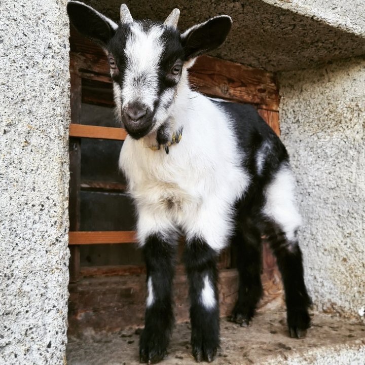 Auf seinem Fensterplatz hat dieses Zicklein alles im Blick. (Bild: Andrea Zurbrügg, Reichenbach BE)
