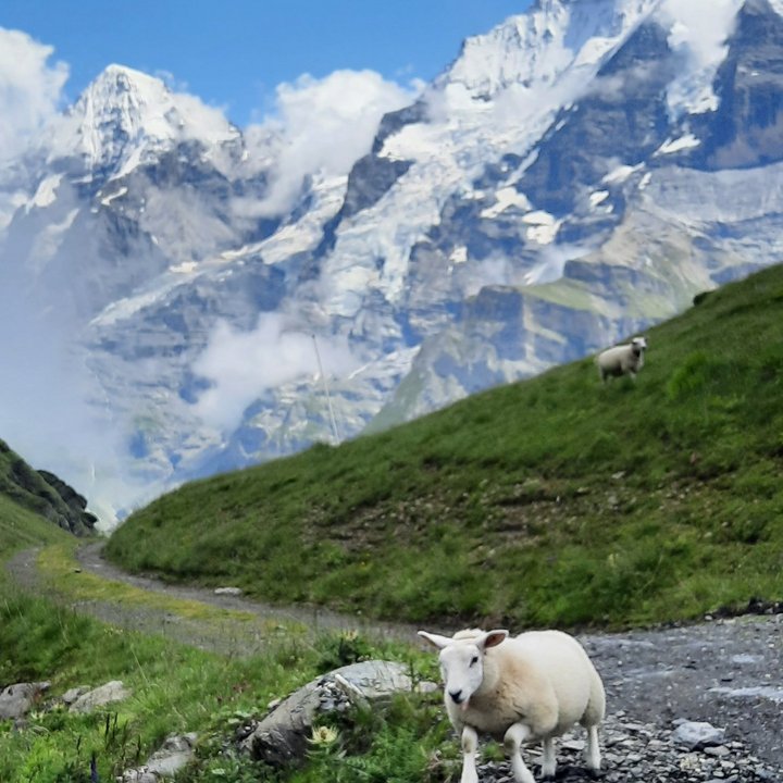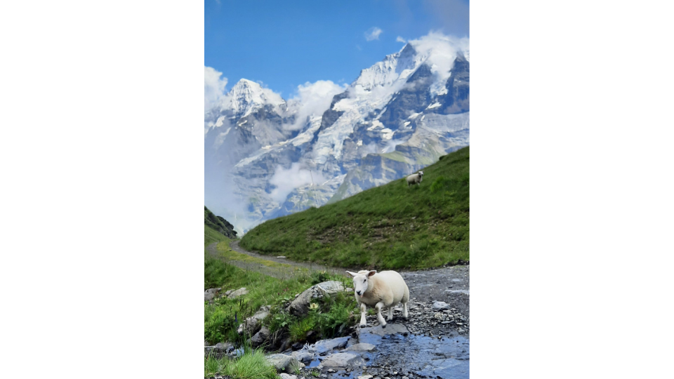 Springschaf: Dieses Schaf scheint nicht gern nasse Füsse zu kriegen. (Bild: Ruedi von Allmen, Mürren BE)