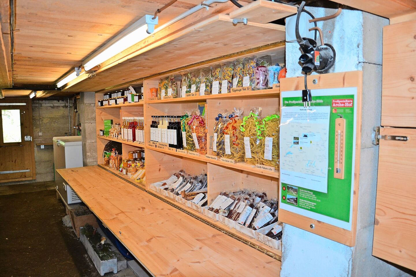 Zentral ist auch der Verkauf von Hofprodukten, bei denen Gerber Wert auf Professionalität legt: einheitliche Gebinde und Etiketten mit Knospe und PSR-Gütesiegel. Ein reiches Sortiment gibt es auch vor Ort im bedienten Hofladen zu kaufen, den Gerber – in der alten Tradition der Lebensmittellagerung im Keller – unter dem Bauernhaus mit viel Liebe zum Detail eingerichtet hat. Unterstützung erhält der Arche-Hof in Form von Direktzahlungen und Förderbeiträgen für den Erhalt bedrohter Rassen (via Zuchtorganisationen). Von PSR gibt es das jährlich zu beantragende Gütesiegel für Hof und Produkte sowie einen Eintrag auf der online verfügbaren «Karte der Vielfalt» für mehr Sichtbarkeit. Dieses «Paket» mit Veranstaltungen und Direktvermarktung sei genug, damit zwei Personen vom Arche-Hof Schangnau leben können. Für Führungen verlangen Gerbers nur einen symbolischen Betrag, um die Hürden nicht zu hoch zu legen und Besucher vor den Kopf zu stossen.