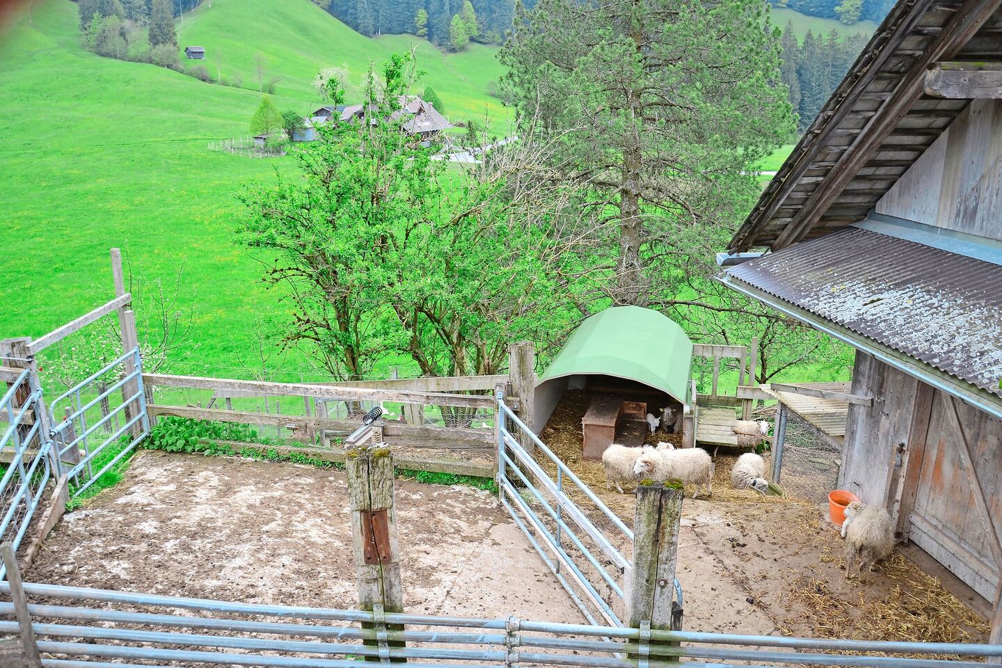Von der Zugangsrampe zum Heustock aus hat man einen guten Blick auf die Suhle der Wollschweine und die Auslaufflächen von Skuddenschafen, Rätischem Grauvieh und Hinterwälder-Mutterkühen. Vorwitzig streckt eine Appenzellerziege den Kopf aus dem Stall. «Wir sind weder ein Streichelzoo noch ein Gnadenhof», stellt Beat Gerber klar. In den letzten zehn Jahren hat er seinen Kleinbetrieb in Schangnau BE zu einem Pro-Specie-Rara-Arche-Hof aufgebaut, der in dieser Form noch bis Ende 2025 besteht.