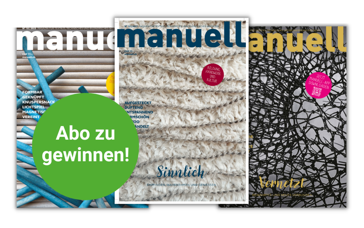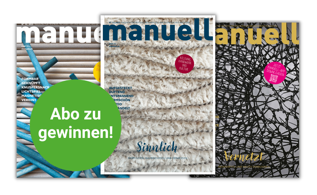 Wir verlosen drei Jahres-Abonnements von «Manuell» im Wert von je 149 Franken. «Manuell» ist das Schweizer Fachmagazin für textiles, technisches und bildnerisches Gestalten. Es wird von Schweizer Fachlehrpersonen gestaltet und erscheint zehnmal im Jahr.