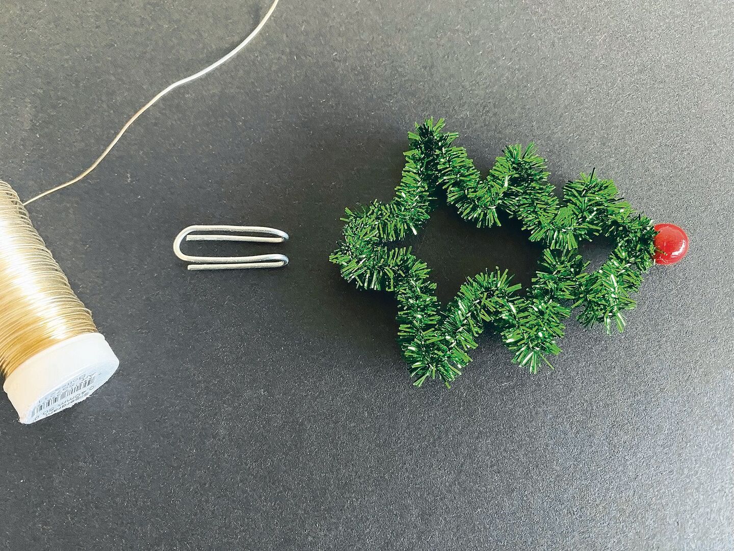 - Für das Objekt aus Chenilledraht entweder das Tannenbaum-Motiv zum Herunterladen verwenden oder ein eigenes Motiv entwerfen. Dann dient die Vorlage als Orientierung für die Grösse.