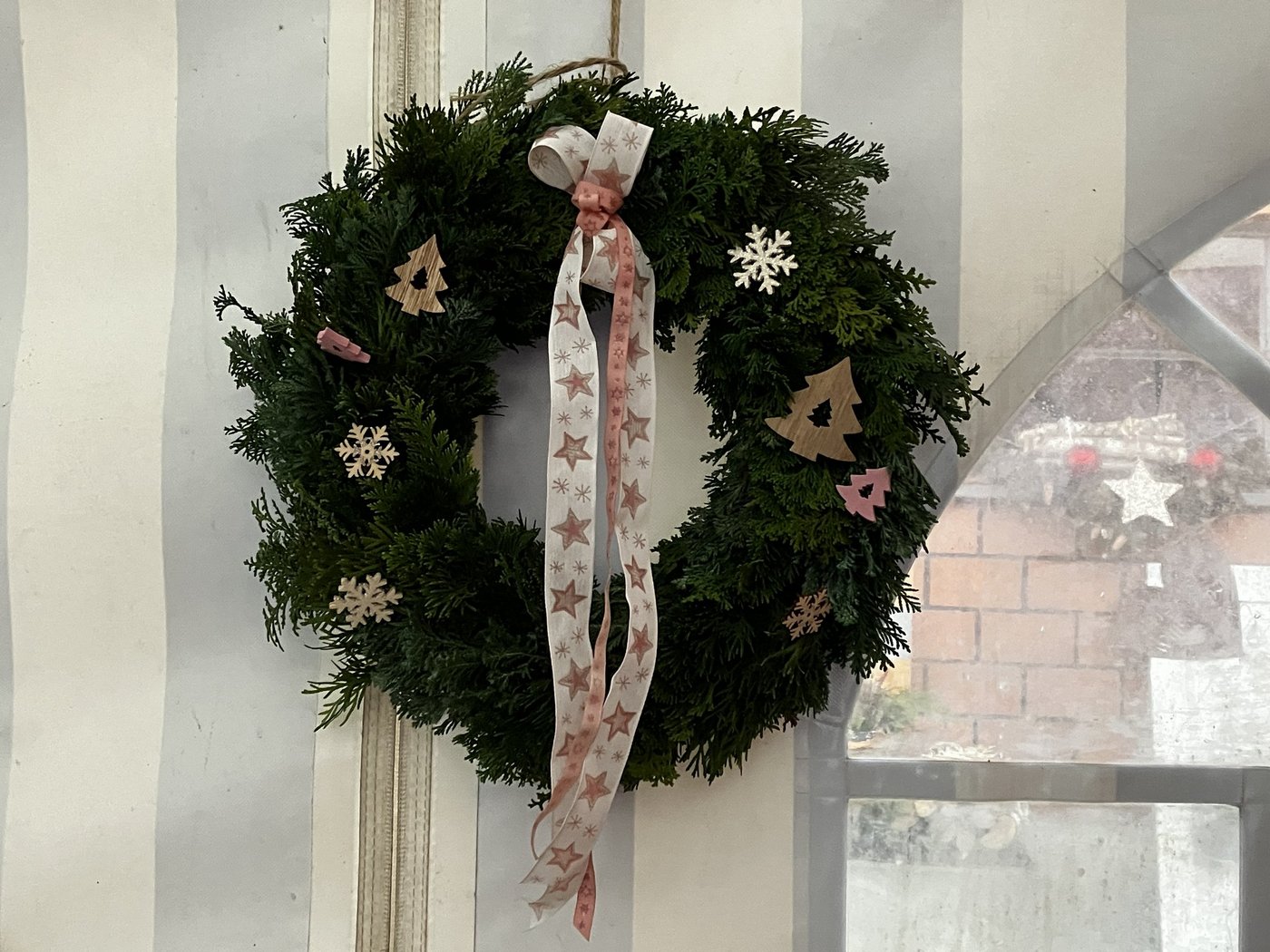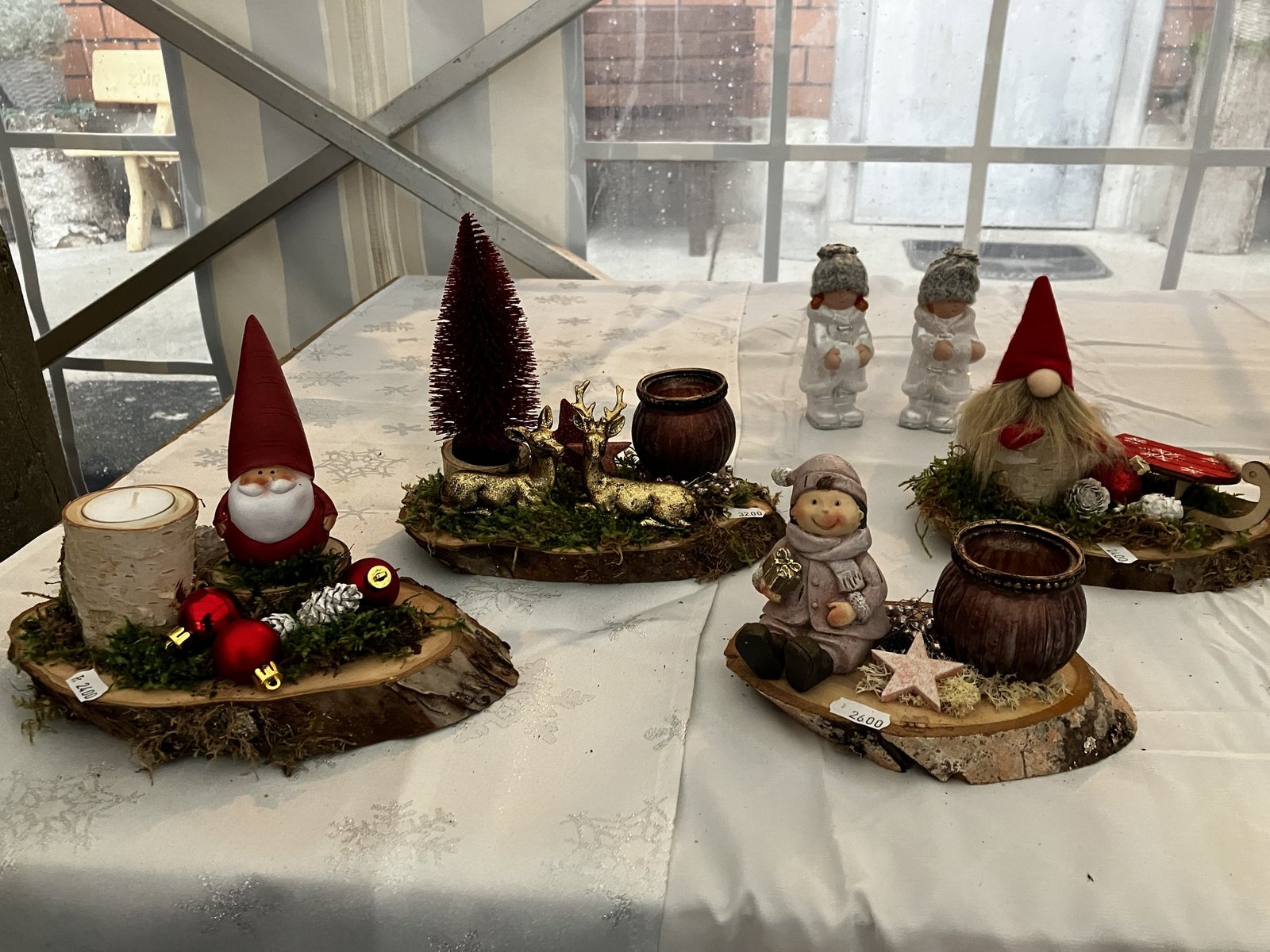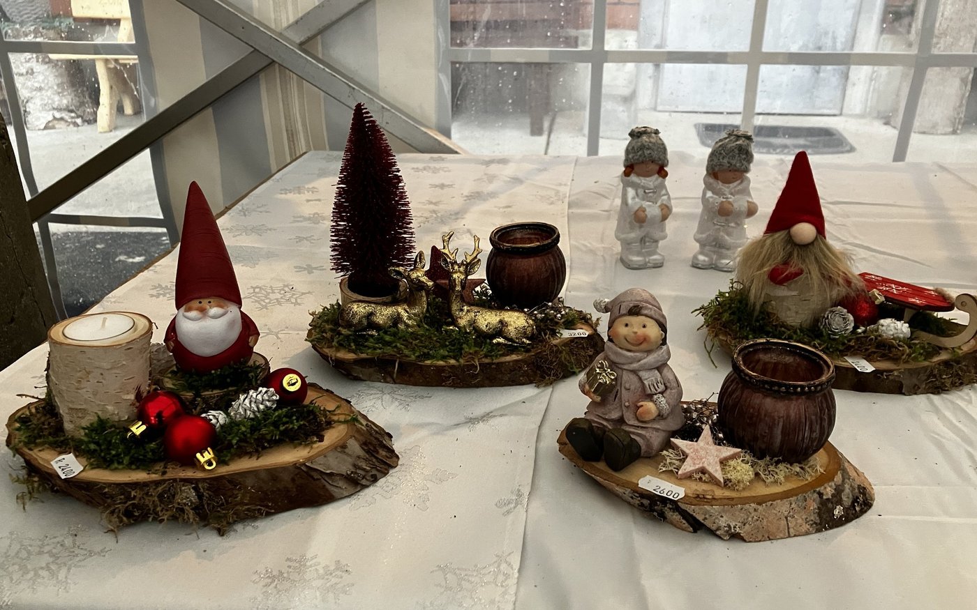 Von ihr selbst stammt eine Serie von Dekorationen mit Zwergen auf einer Holzscheibe oder auf einem Rebstock. Für die Kränze dagegen sind ihre Mutter und eine Nachbarin zuständig, eine Tradition, die Sandras Mutter Astrid Weber schon seit Jahren ausübt. Der schöne Schriftzug auf den verschiedenen Tafeln und Karten schliesslich stammt von Schwester Manuela Weber.