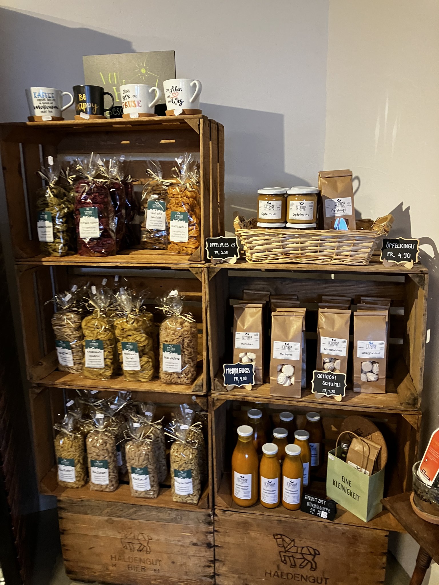 Das Sortiment wird mit Erzeugnissen anderer lokaler Produzent(innen) abgerundet. Dazu gehören Milchprodukte wie Käse, Joghurts und Glace sowie Fleisch. Samstags, wenn der Laden bedient ist, wird zudem Brot und Zopf angeboten. Regionalität ist ein wichtiger Aspekt: «Alle unsere Produkte stammen aus der Schweiz, die meisten aus der Gegend», betont Sandra Reinhardt.