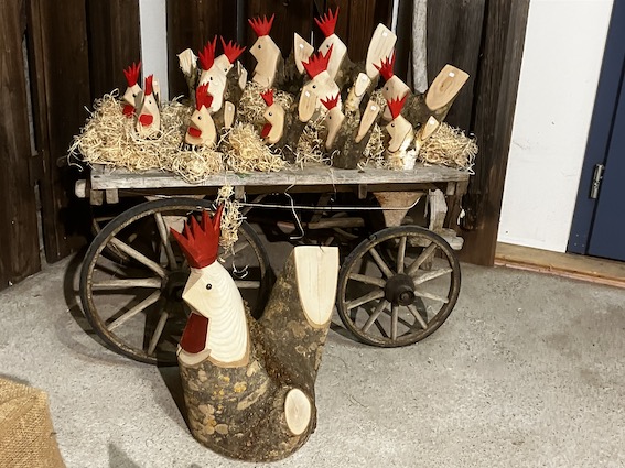 Zudem ist jeweils von November bis Dezember der Hofladen geöffnet. Manche Kund(innen) holen sich kleinere Objekte fürs Blumenkistli oder grössere Figuren, die sie vors Haus stellen. Die Dekorationen werden gerne auch als Grabschmuck verwendet, dazu eignen sich etwa die geschnitzten Kerzen. Dabei hat es für jede Altersgruppe etwas dabei: «Krippenfiguren werden tendenziell eher von älteren Kunden ausgesucht, Tierfiguren von jüngeren», beobachtet die Landwirtin in Ausbildung.