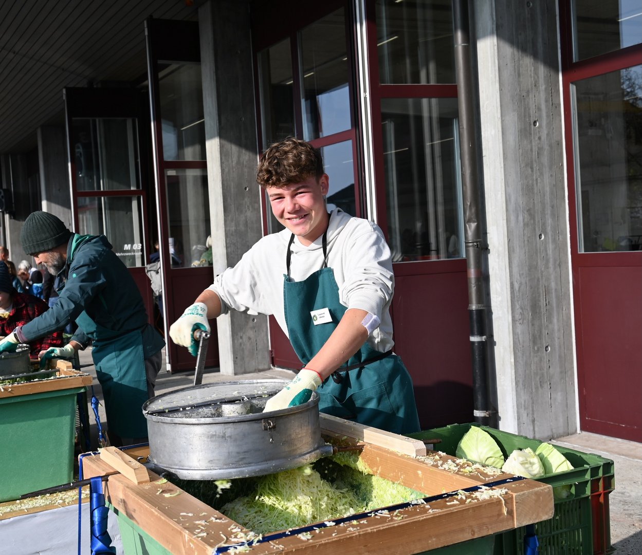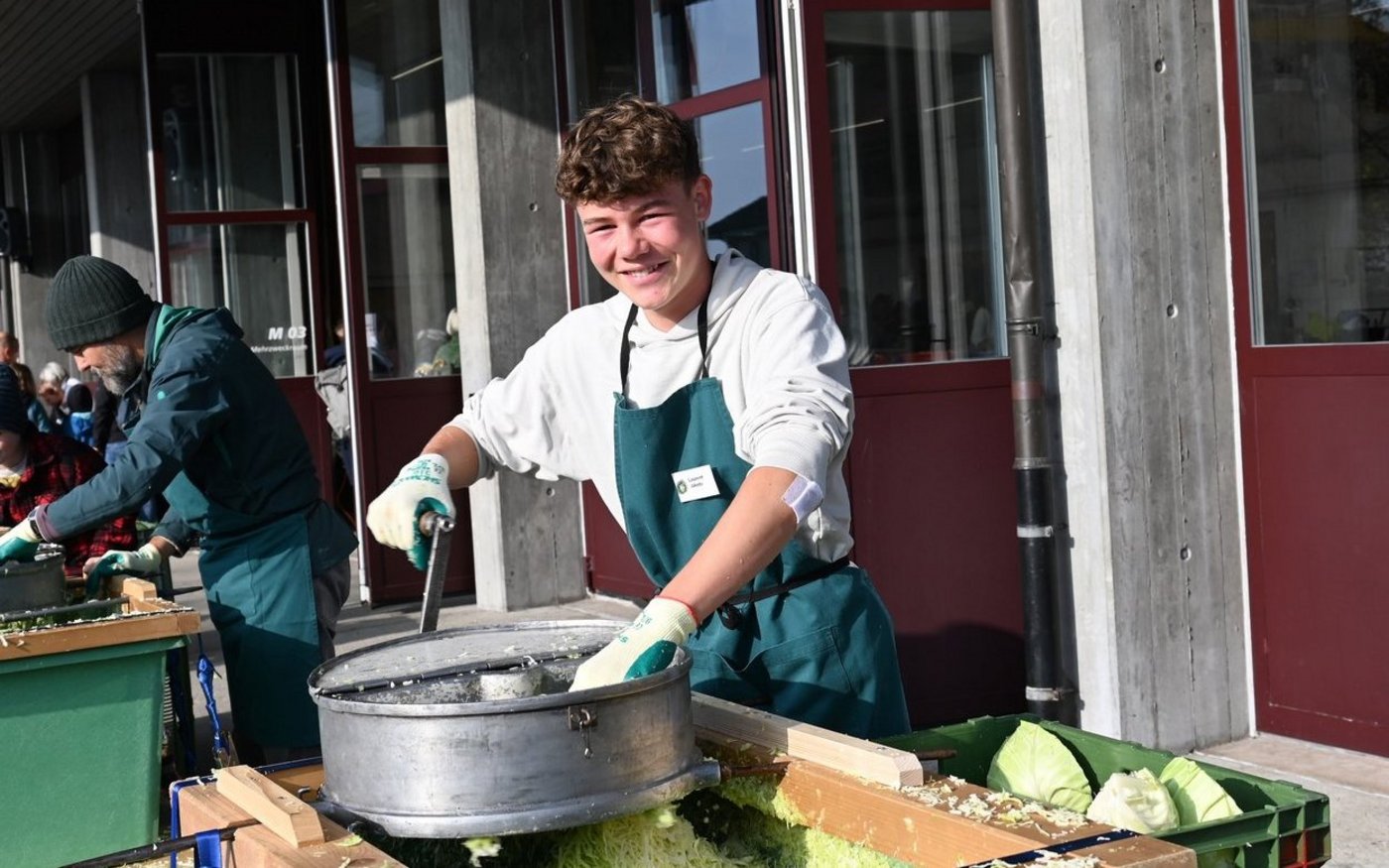 Was vor 25 Jahren mit 400 kg verarbeitetem Weisskohl begann, hat sich stets entwickelt. Man sei nun bei rund 6,5 Tonnen angelangt, so Regula Gygax. Weiterwachsen könne der Anlass jedoch nicht, da man an die Kapazitätsgrenzen stosse. Auch wenn der Anlass über die Jahre gewachsen ist, geblieben ist die Ursprungsidee: «Wir wollen zeigen, wie man ein gesundes Nahrungsmittel herstellen und haltbar machen kann», erklärt Regula Gygax. Sie selbst arbeitet bei der Kasse. Viele Besucherinnen und Besucher kämen jedes Jahr wieder, es habe aber auch jedes Jahr neue.