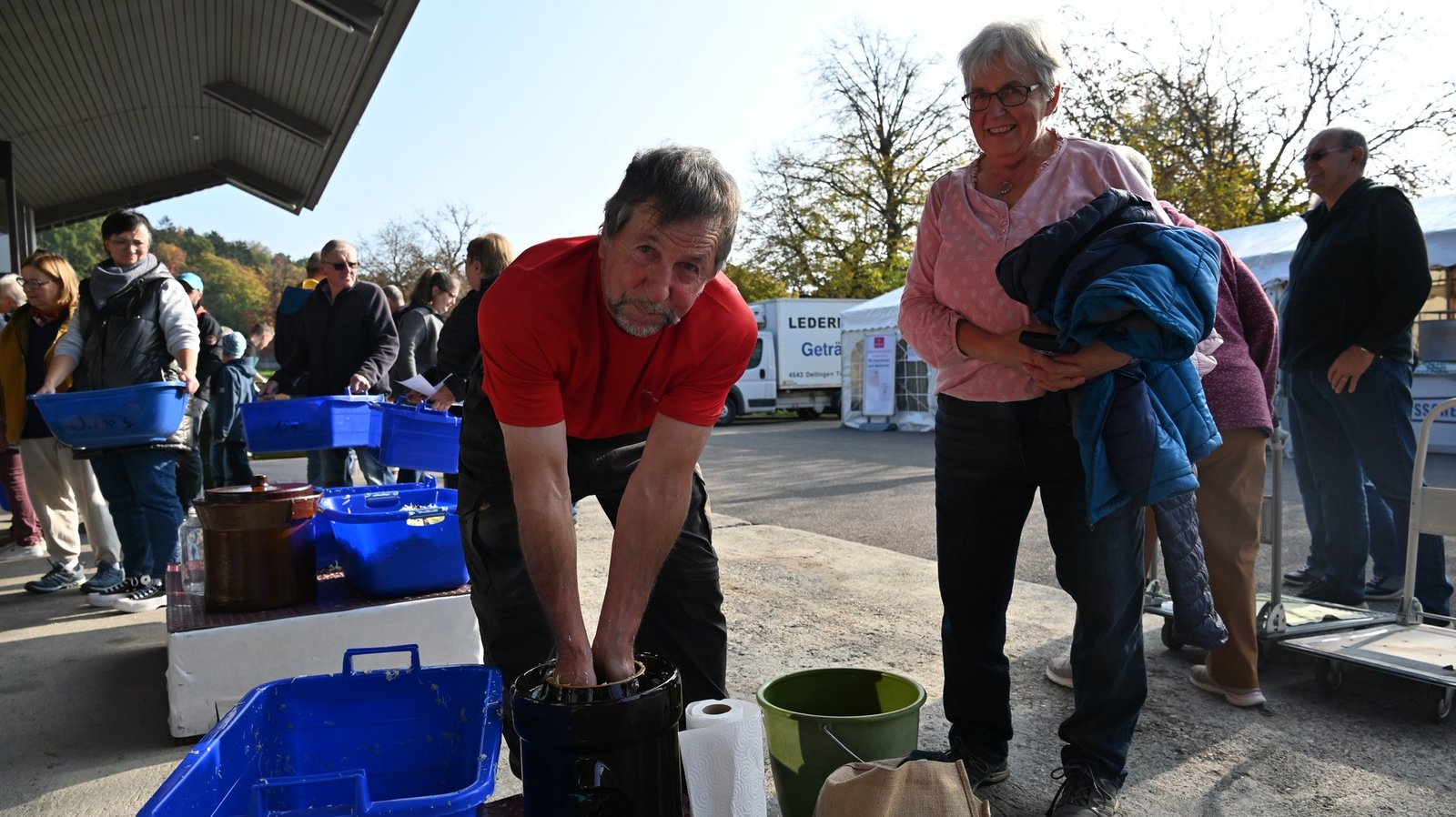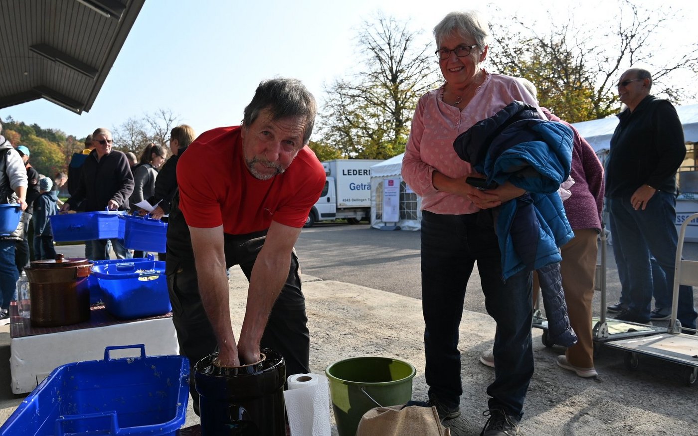 An der Chabishoblete wird aber nicht nur Weisskohl verarbeitet, es ist auch gesellschaftlicher Anlass. Das ist mehrfach von den Besuchenden, aber auch von den Helfern zu hören. So haben etwa Hans und Marlise Stuber aus Oberwil bei Büren BE eine kleine Stande mitgebracht, um genug Sauerkraut für den Winter zu haben.