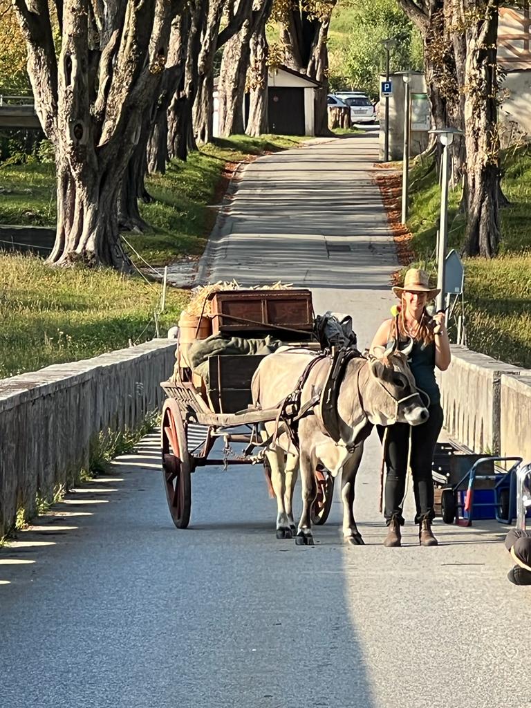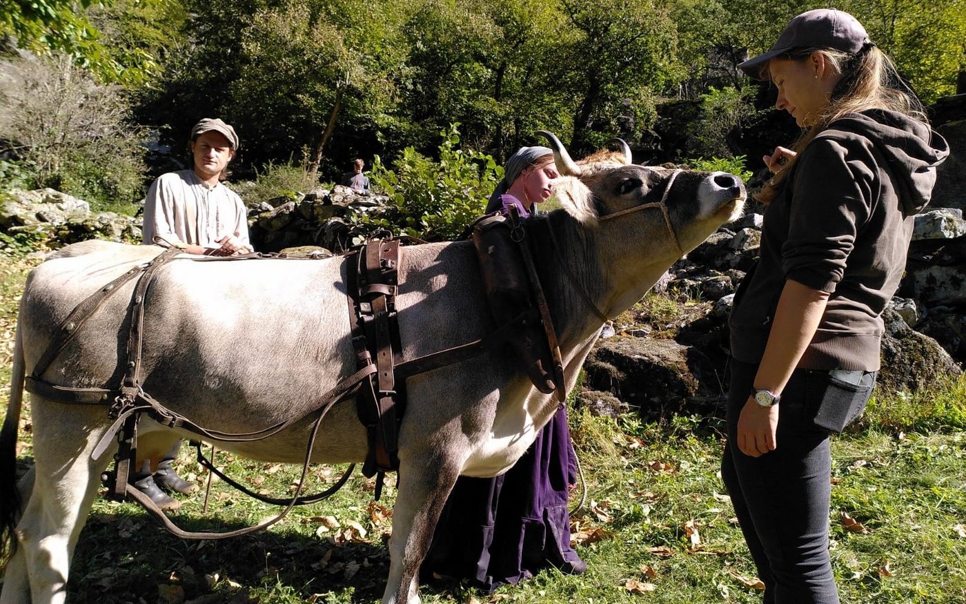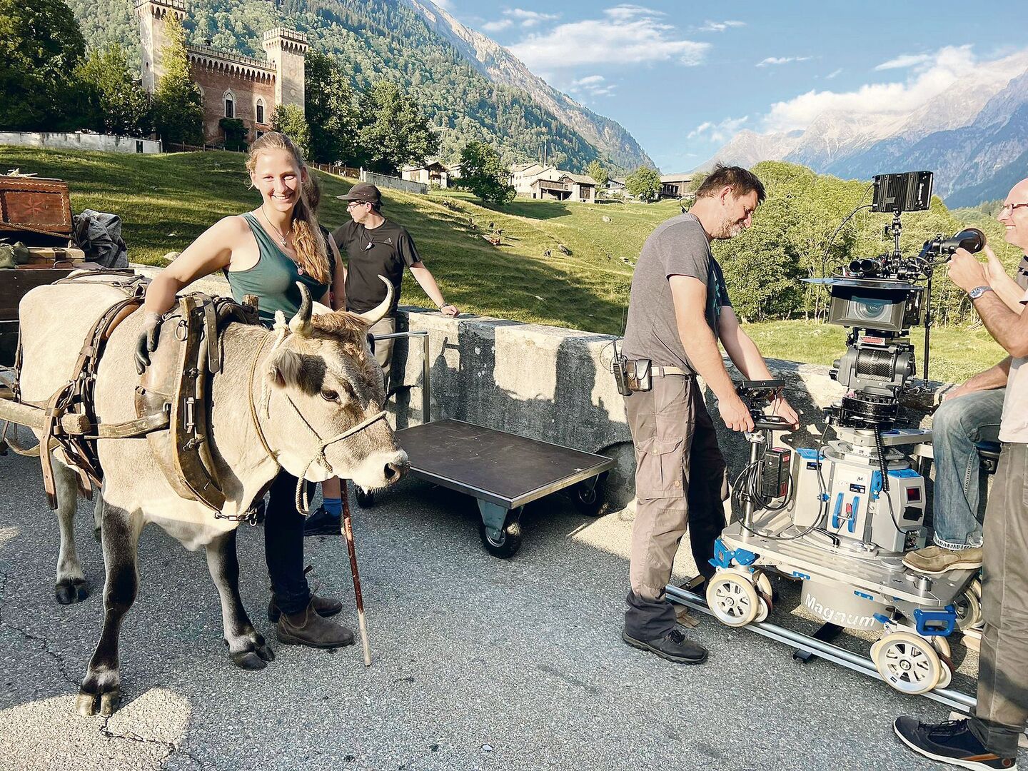 Dazu kam die Materialschlacht: Ein historischer Karren aus einem deutschen Museum mit zu kurzen Landen und einem historischen Berner Kuhkummet, das dann aber noch ein Hintergeschirr und einen Bauchgurt mit Riemen benötigte. So stand der Sattler nur eine Woche vor Drehbeginn auf dem Hof, damit alles kuhkonform angepasst werden konnte. Zwei Monate lang war Elly für die Dreharbeiten im Tessin untergebracht. «In dieser Zeit war das mit der weiten Anreise vor den Drehtagen für mich ein 50-Prozent-Job.»