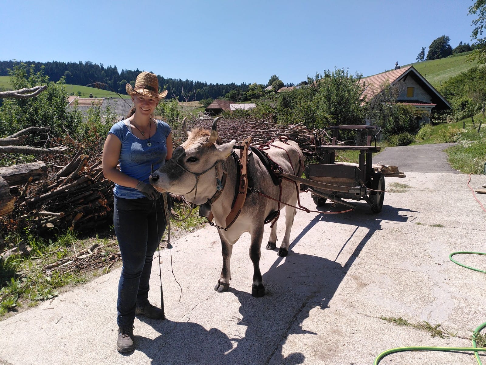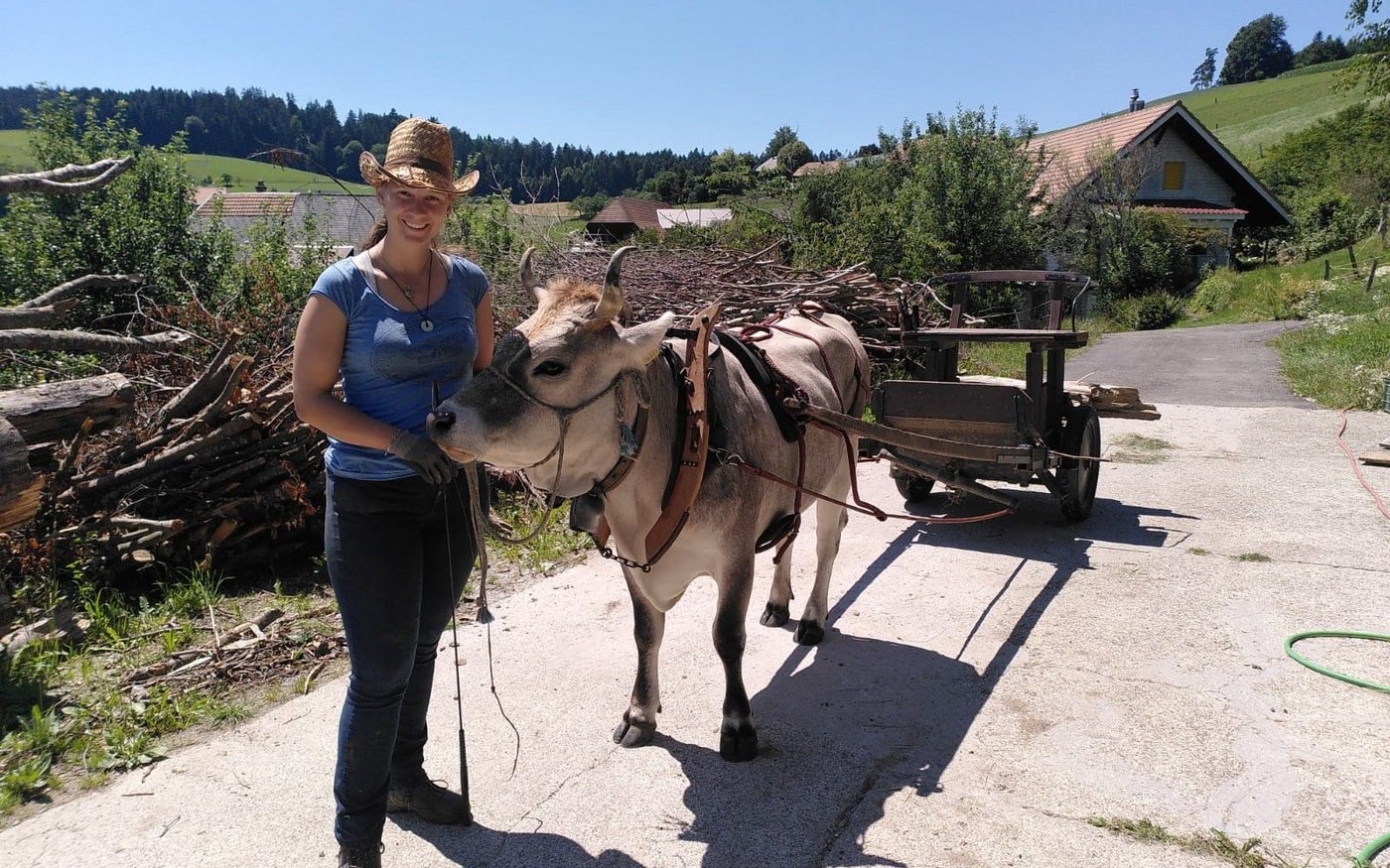 Vera Hofer ist mit ihren Pferden auf einem Bauernhof im Emmental eingemietet und bietet dort Reit- und Fahrstunden an. Ursprünglich stammt sie nicht aus einer Bauernfamilie und wollte Tierärztin werden, aber entschied sich dann für ein Agronomiestudium mit Vertiefung Pferdewissenschaften an der HAFL. Ein eigener Hof war ein Thema, aber nun hat Hofer mit der Wohngelegenheit auf einem Betrieb die für sich ideale Lösung gefunden. Elly lebt auf einem anderen Hof in einer Evolèner-Mutterkuhherde.