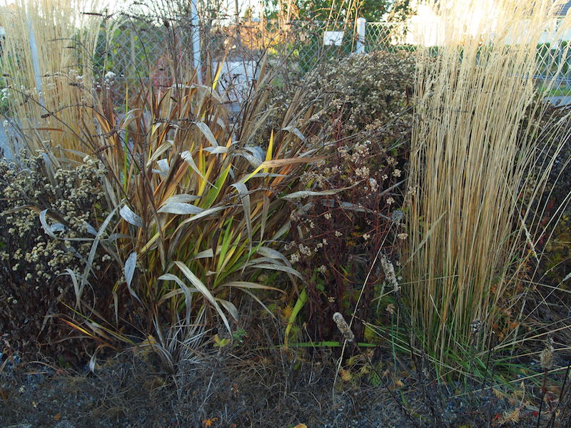 Gräser und Stauden bezaubern mit dezenten Braun- und Beigetönen und ihren Strukturen. Grauweisse Blütenschleier legen sich übers Beet, Silhouetten treten im abendlichen Gegenlicht hervor. Es raschelt im Wind. Doldengewächse mit ihren fingerstarren Blütenständen ragen in die Luft. Distelfinken verlustieren sich an Karden und picken Samen. Hohle Stängel bieten Insekten Wohnraum. Wo sonst sollen sie und die Spinnen überwintern? Nicht umsonst machen sich die Insekten zunehmend rarer. Es fehlt ihnen der Lebensraum in einer ausgeräumten Landschaft.