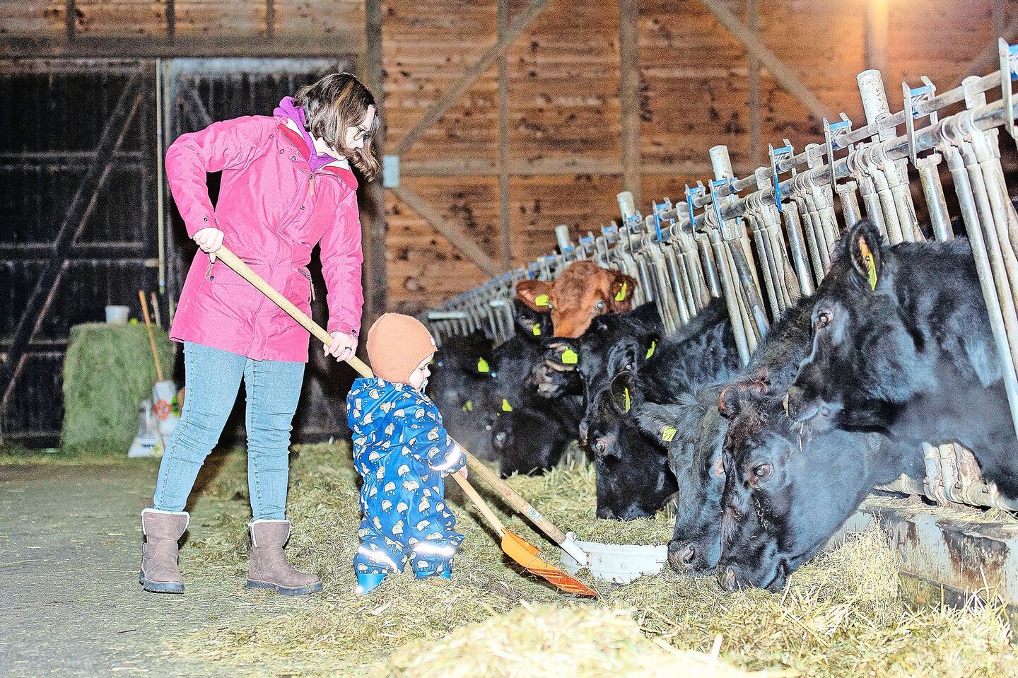 Von 2019 bis 2021 hat die junge Mutter am Bildungszentrum Wallierhof die Bäuerinnenschule absolviert und nebst den neun Pflichtmodulen auch die Wahlmodule Rindvieh- und Kleintierhaltung besucht. Das Wissen kann sie nun in ihrem neuen Aufgabenbereich ideal einsetzen. Das Modul Milchverarbeitung hätte sie auch interessiert, erzählt sie, aber damals war schon klar, dass wir einen Betrieb mit Mutterkuhhaltung suchen, wie es auch der von den Schwiegereltern ist. Die Abschlussprüfung werde sie dann nächstes Jahr in Angriff nehmen, denn erst da hat sie die benötigte Praxiszeit auf dem eigenen Betrieb erarbeiten können.