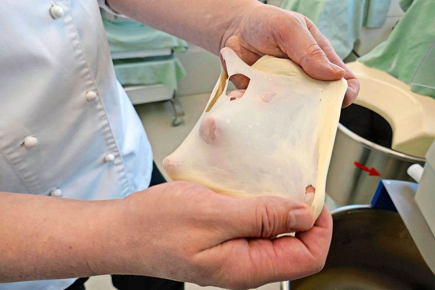 Fertig geknetet ist der Teig so weich, wie man es von Hand nicht annähernd erreicht. Mit der «Fensterprobe» erkennt der Fachmann, wann der Teig genügend geknetet ist. Dafür nimmt er ein Stück Teig und zieht es vorsichtig auseinander: Das hauchdünne Teigstück ist fast durchscheinend. Ein Zeichen, dass es an der Zeit ist, den Teig zugedeckt bei Zimmertemperatur stehen zu lassen, bis er ums Doppelte aufgegangen ist.