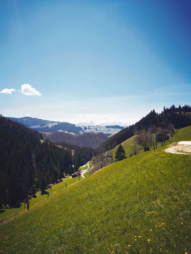 Knapp zwei Drittel davon sind landwirtschaftliche Nutzfläche, vor allem in Form von Wiesen und Weiden. Diese Fläche könnte unterschiedlicher nicht sein. Das Dorf befindet sich auf rund 700 m ü. M. Dort befinden sich Flächen, die sich sehr gut bewirtschaften lassen und wo auch etwas Ackerbau betrieben wird. Weiter in Richtung Schangnau wird es hügelig und es gibt viele Betriebe, deren gesamte Fläche «aufgehängt» ist.[IMG 2]