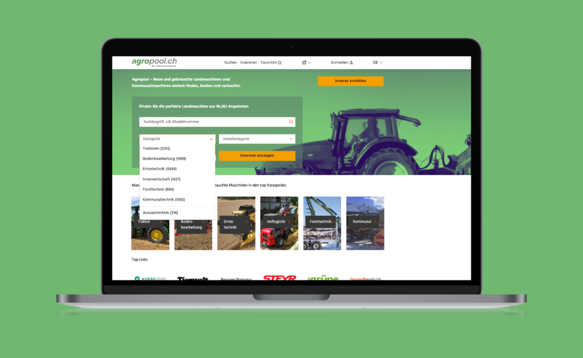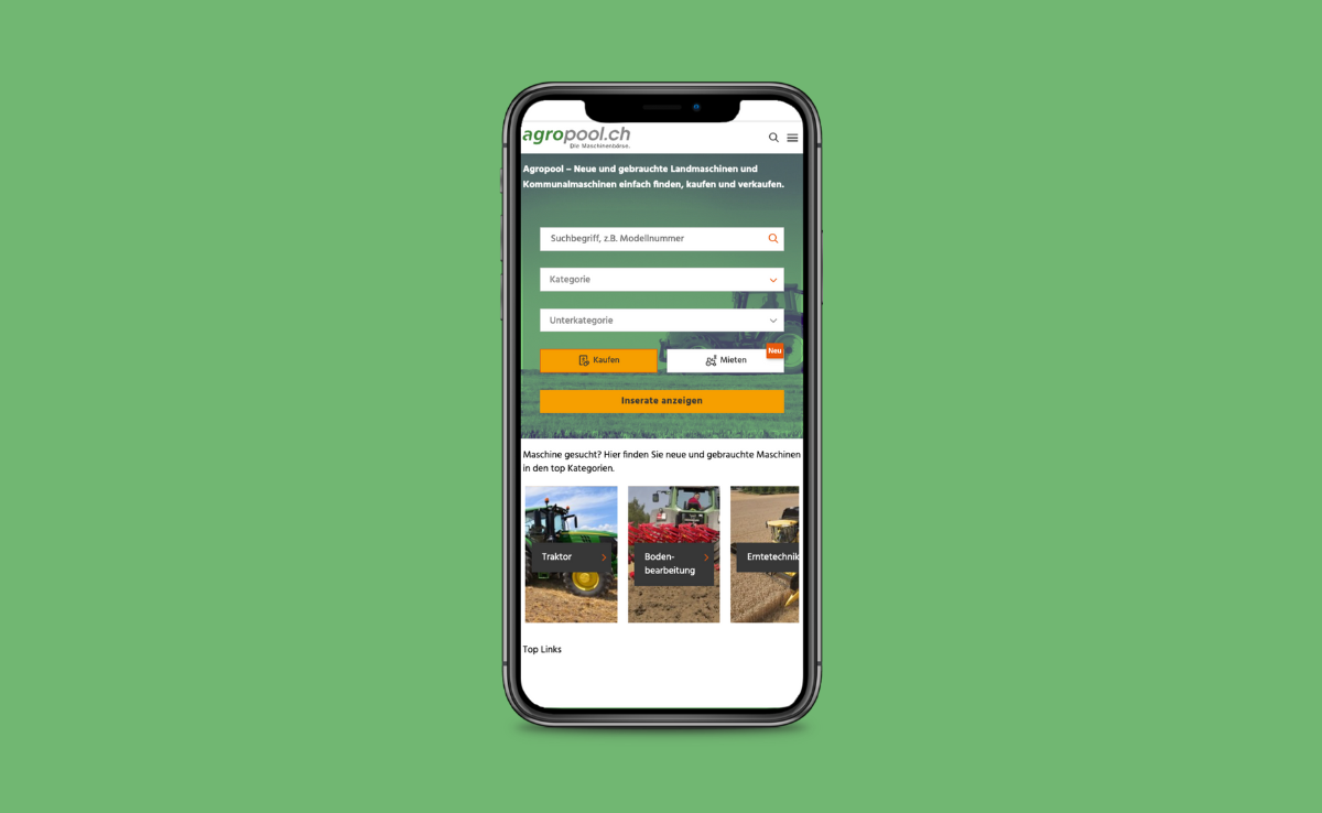 Wollen Sie etwas mieten oder vermieten? Melden Sie sich bei Agropool an.