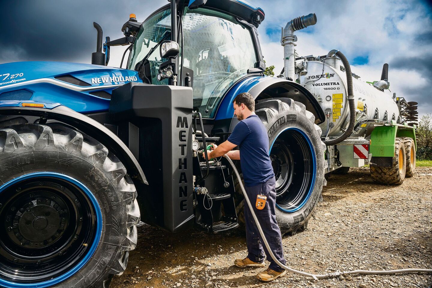 Ein möglicher Lösungsansatz für dieses Problem liegt auf der Hand beziehungsweise vor der Stalltüre: In der auf dem Hof anfallenden Biomasse steckt das Potenzial für nachhaltigen, sauberen Treibstoff, der durch eine Biogasanlage gewonnen werden kann. Alles, was es dann noch braucht, ist ein Traktor, der damit fahren kann. New Holland hat als erster Hersteller einen solchen Traktor entwickelt und produziert das Modell T6 180 Methane Powered inzwischen in Serie. Für New Holland ist das nur der erste Schritt: Im Dezember wurde in den USA ein bereits neuer Prototyp für einen gasbetriebenen T7 gezeigt.
