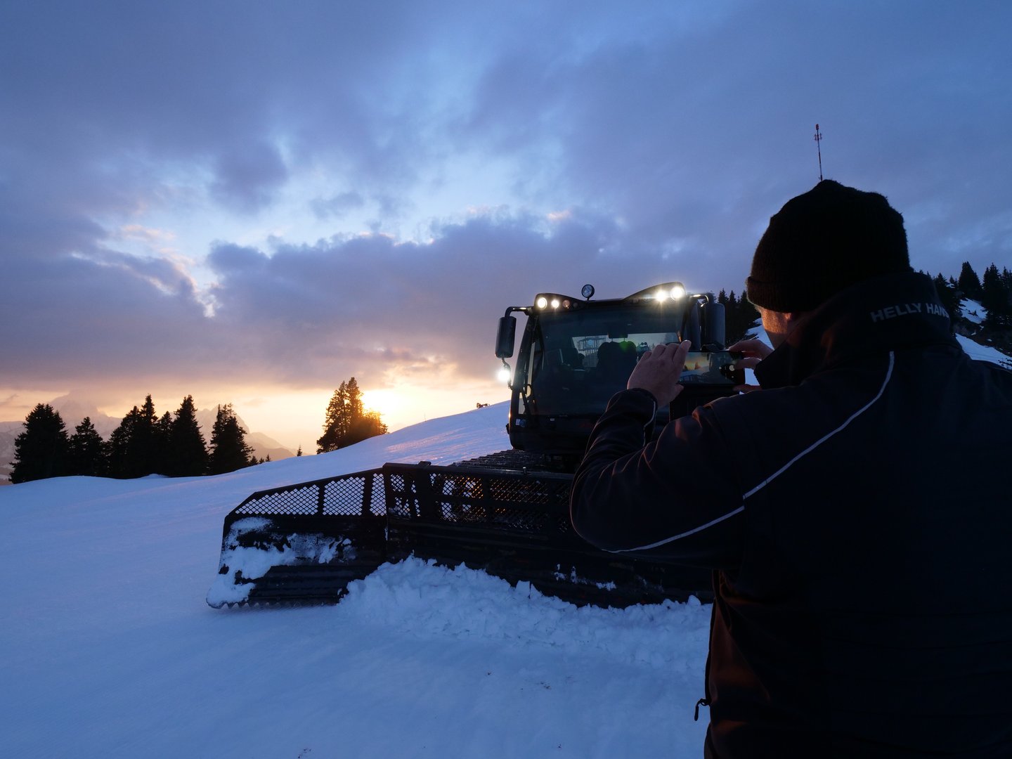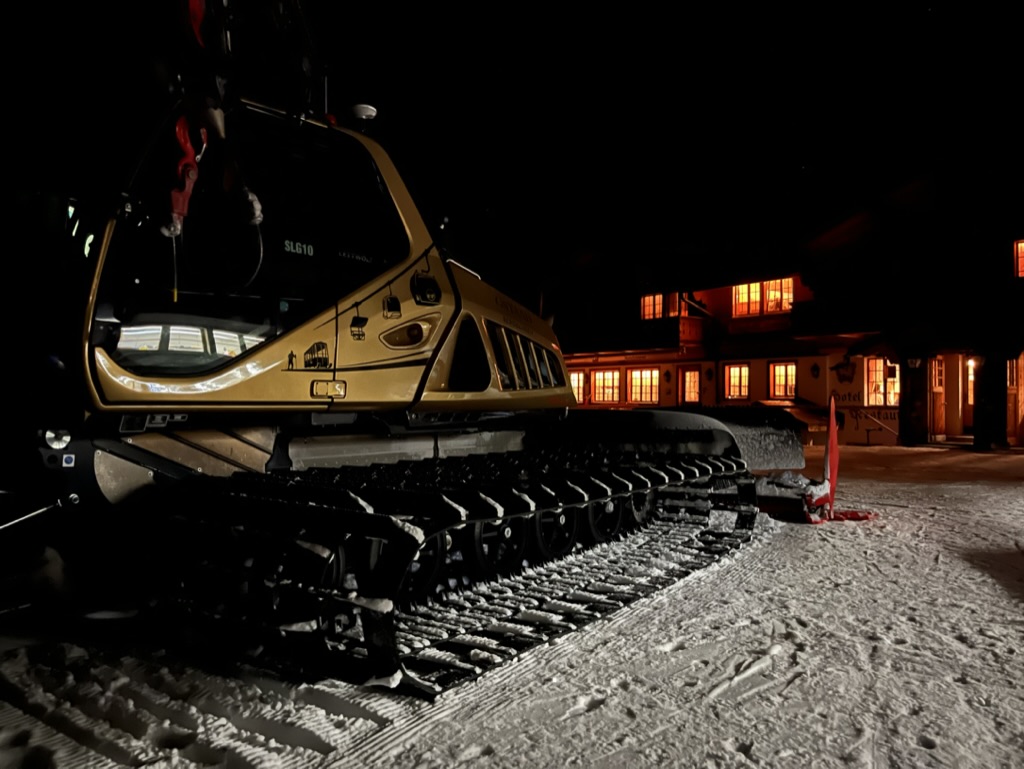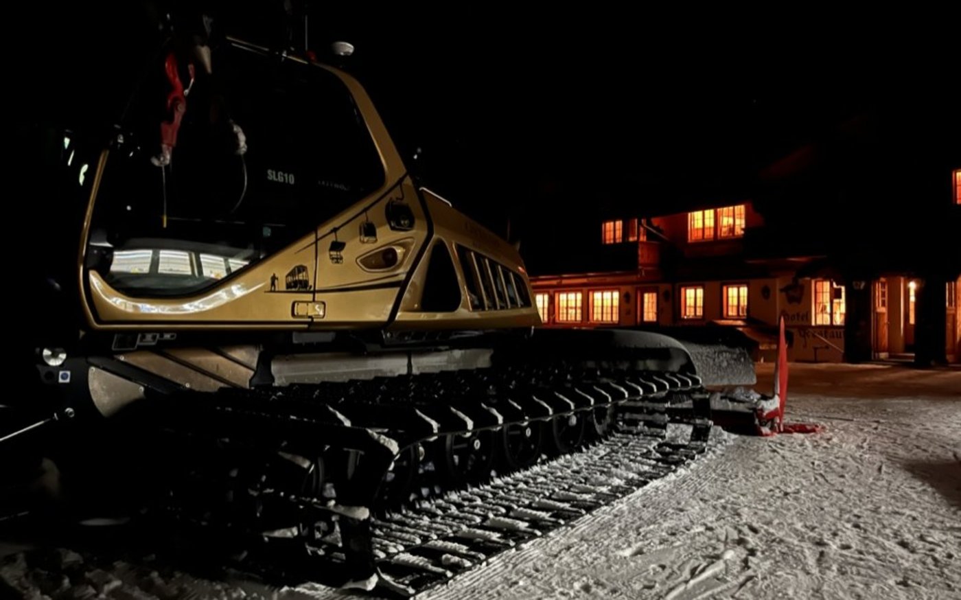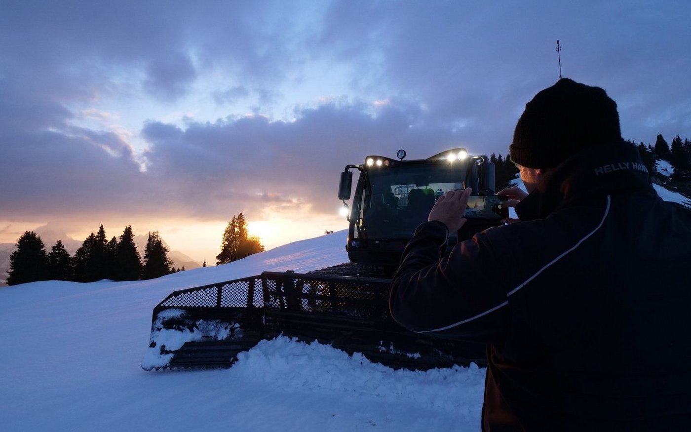Und das kann dauern. Nicht selten dreht er den Schlüssel zur 500-PS-Maschine erst um 5 Uhr morgens wieder um. Wenn in der Nacht Schnee fällt, kann die Schicht auch erst um 3 Uhr morgens beginnen, weil die Skigebiet-Betreiber möglichst viel Schnee anhäufen lassen wollen, bevor sich die Kässbohrer-Pistenbullys und Prinoth-Pistenfahrzeuge an die Arbeit machen.